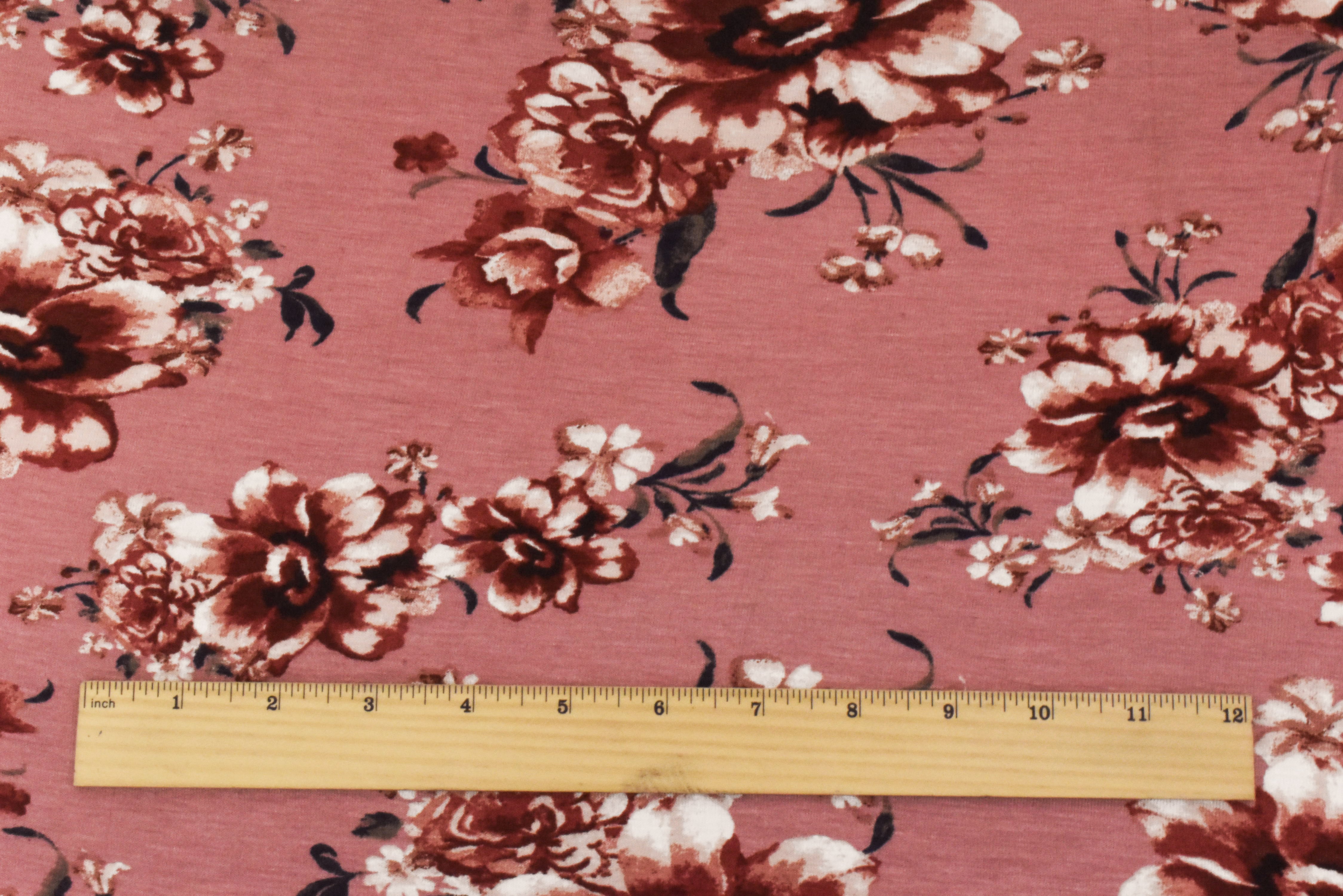 Dusty Pink-Red-Multi Floral Printed Stretch Rayon Jersey Knit Fabric