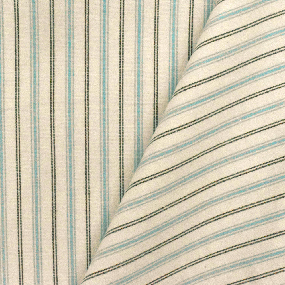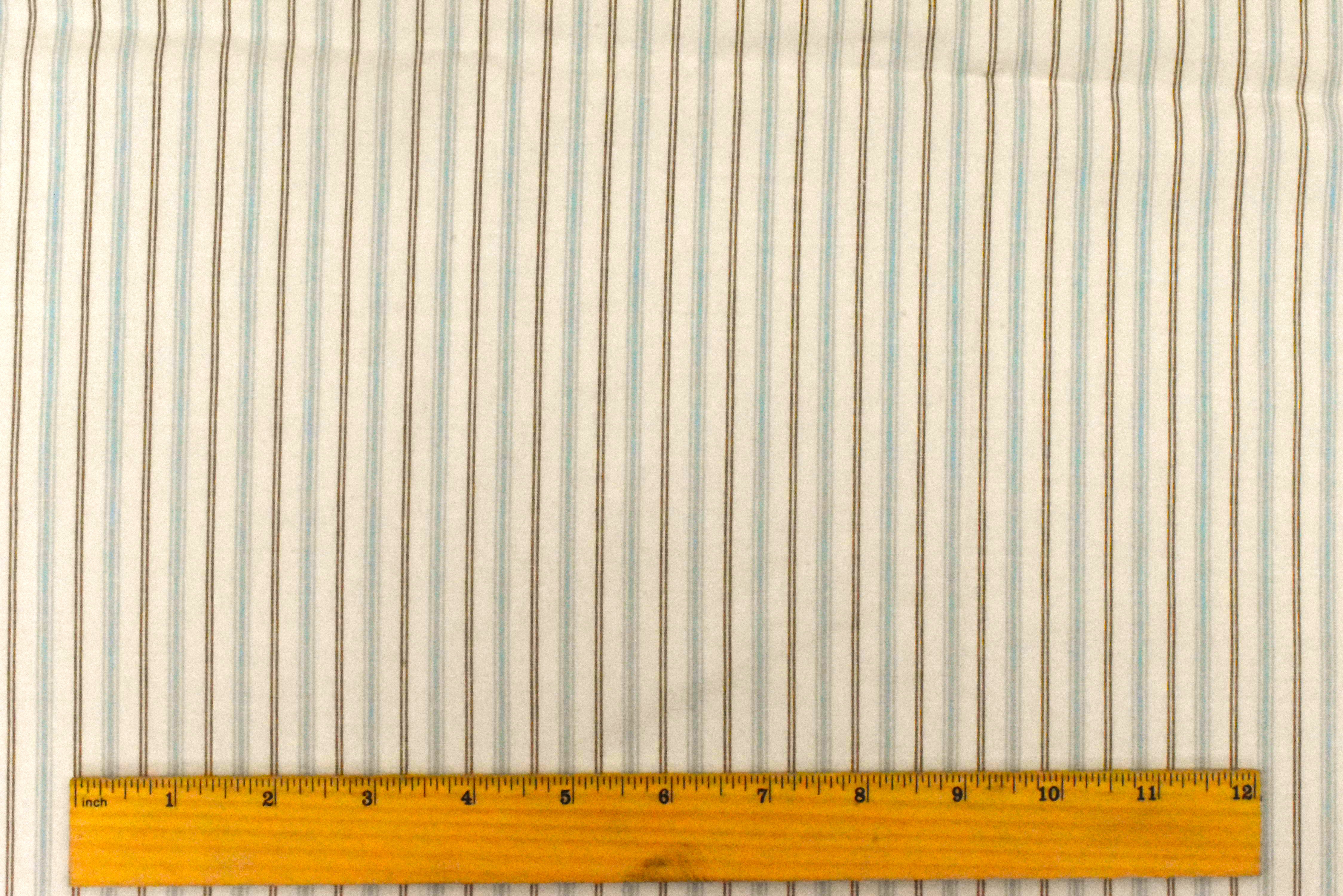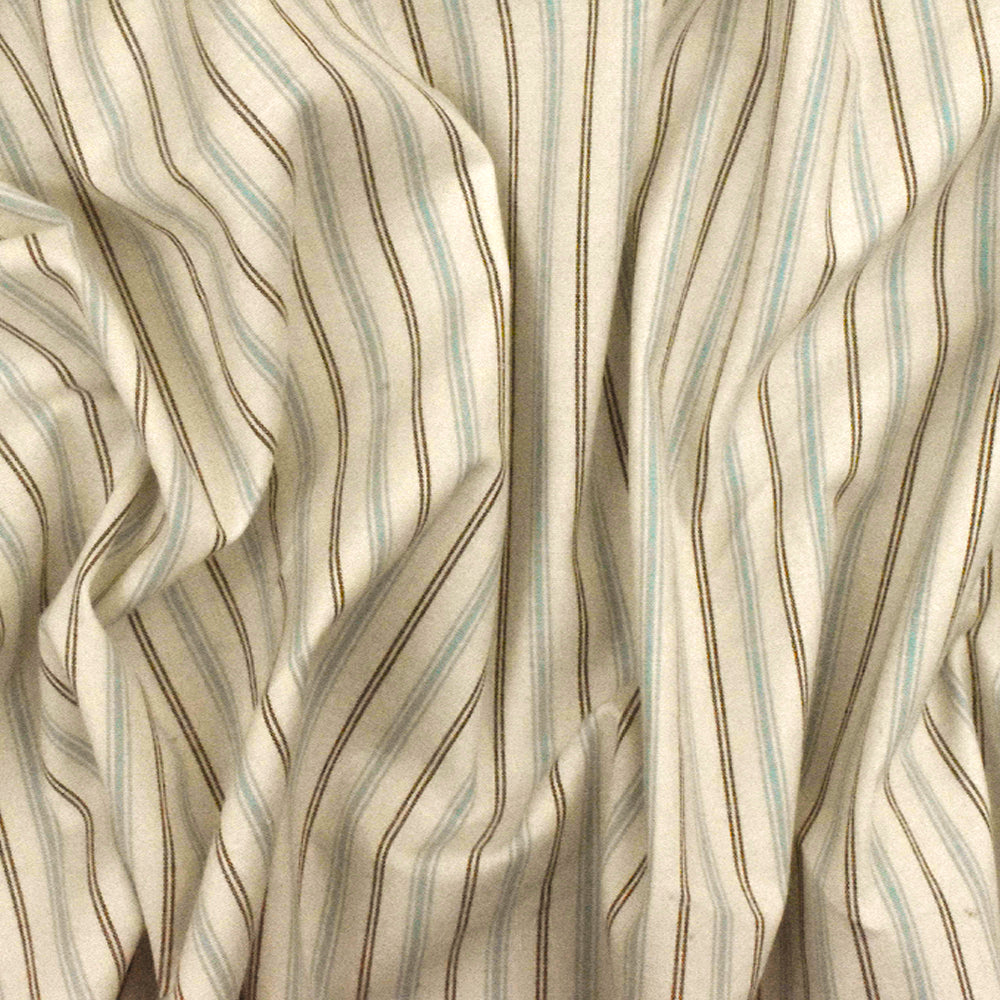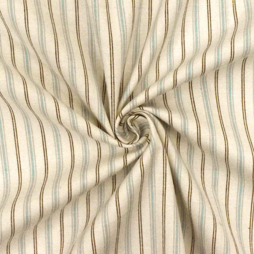 Ivory-Brown-Blue Stripe Stretch Cotton Woven Shirting Fabric
