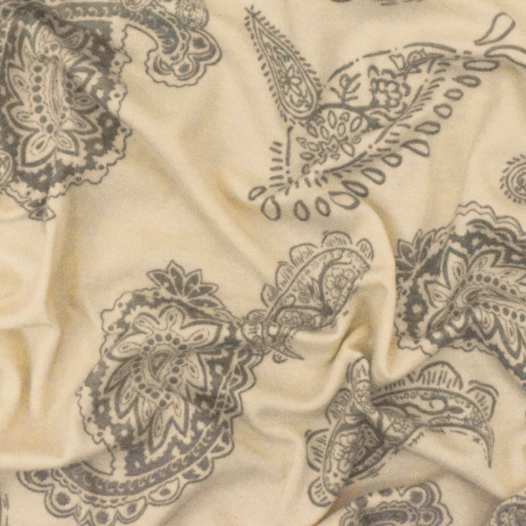 Light Beige-Gray Paisley Printed Stretch Jersey Knit Fabric