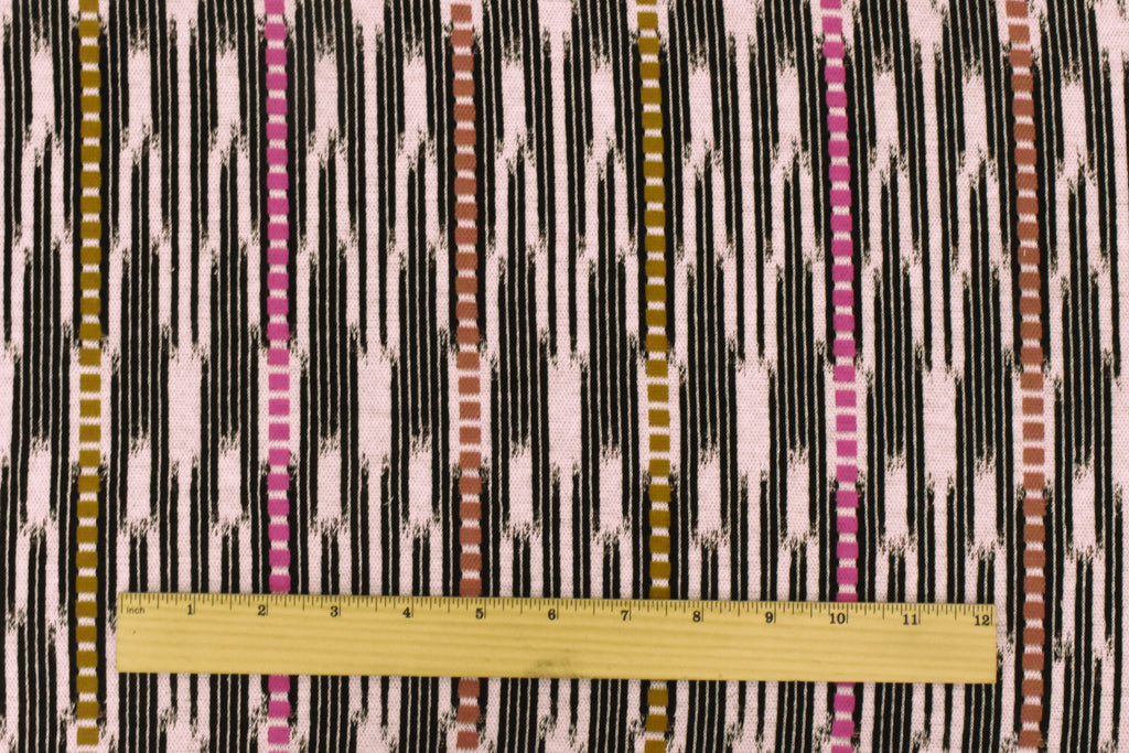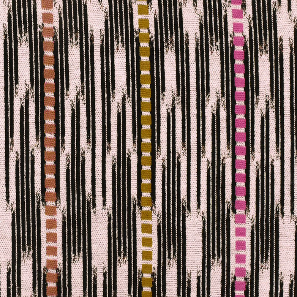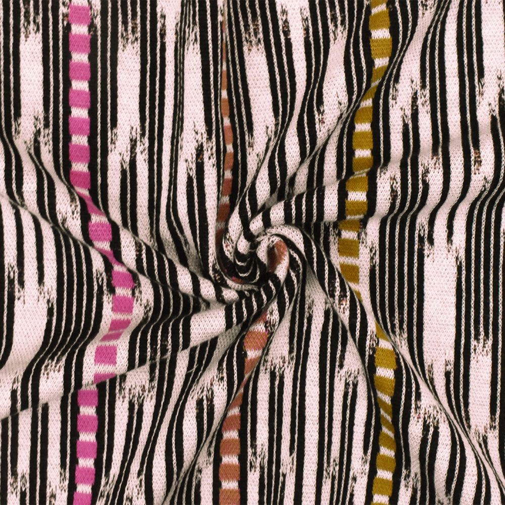 Pink Ivory-Black-Multi Abstract Ikat Stripe Stretch Double Knit Fabric