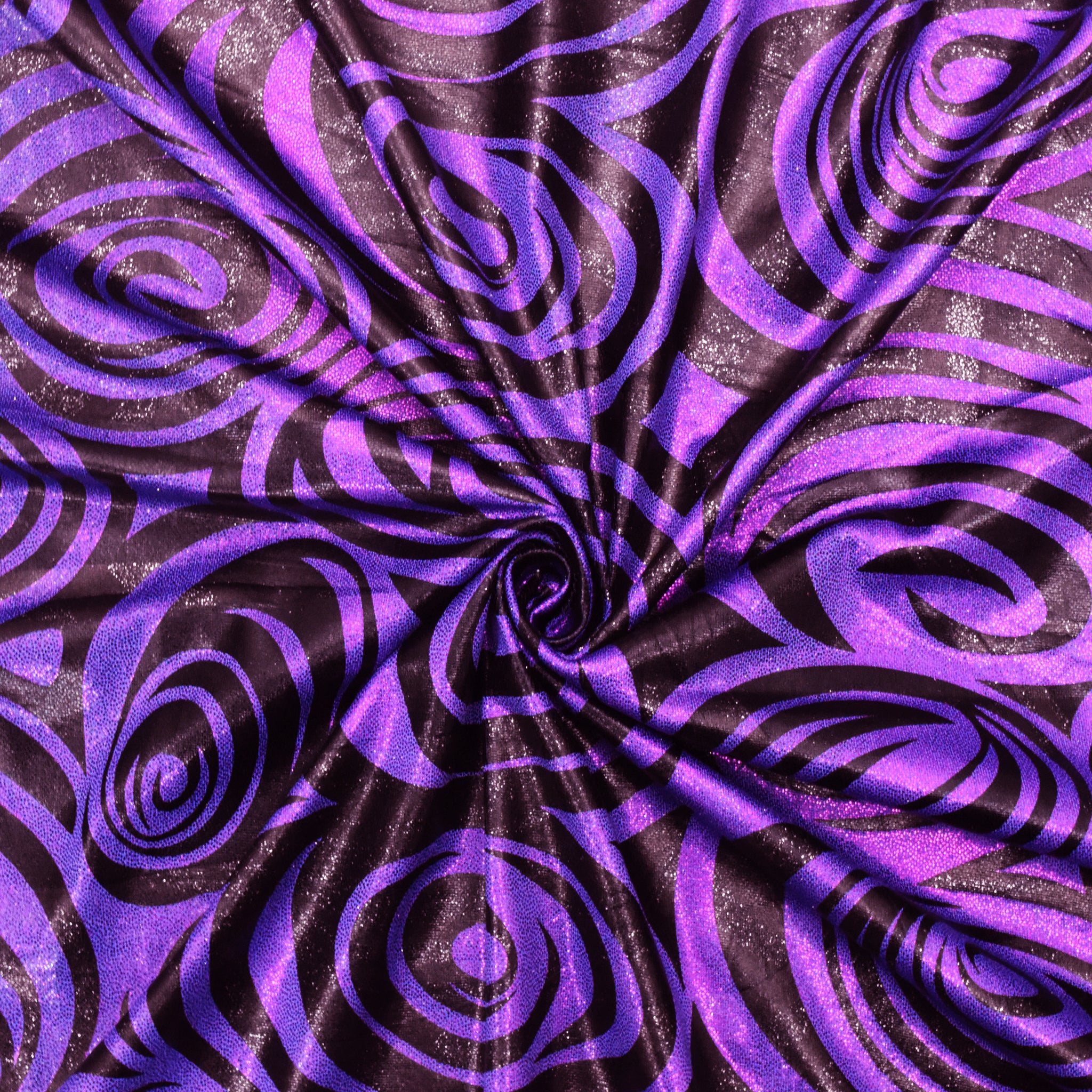 Purple-Black Swirl Hologram Print Stretch Activewear Fabric
