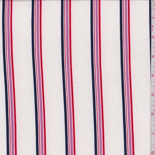 White/Navy/Orchid Stripe Double Brushed Jersey Knit Fabric