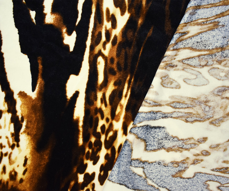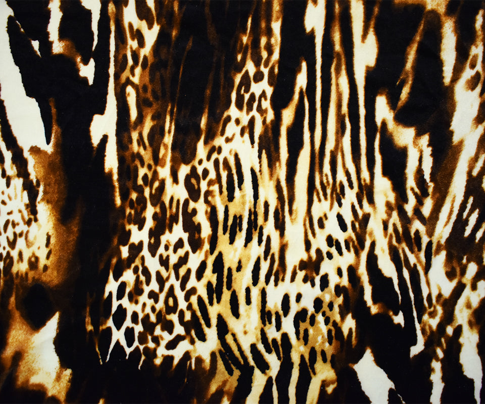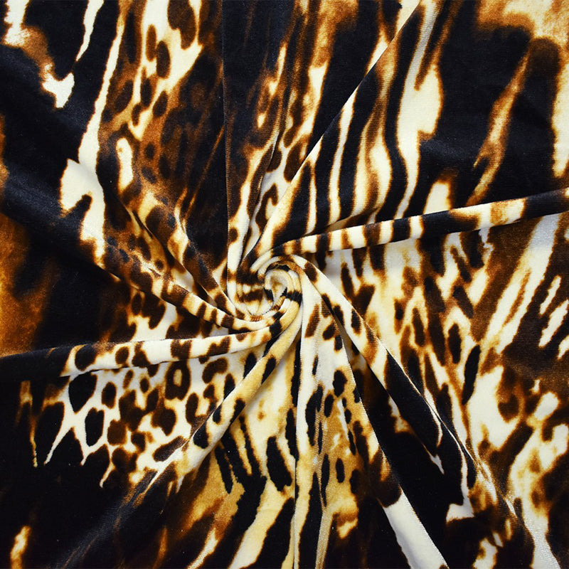 Brown-Black-Multi Poly Stretch Leopard Printed Velvet Knit Fabric