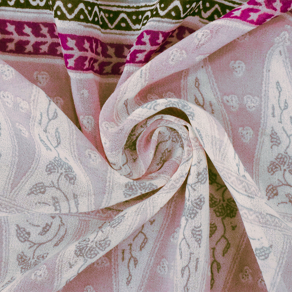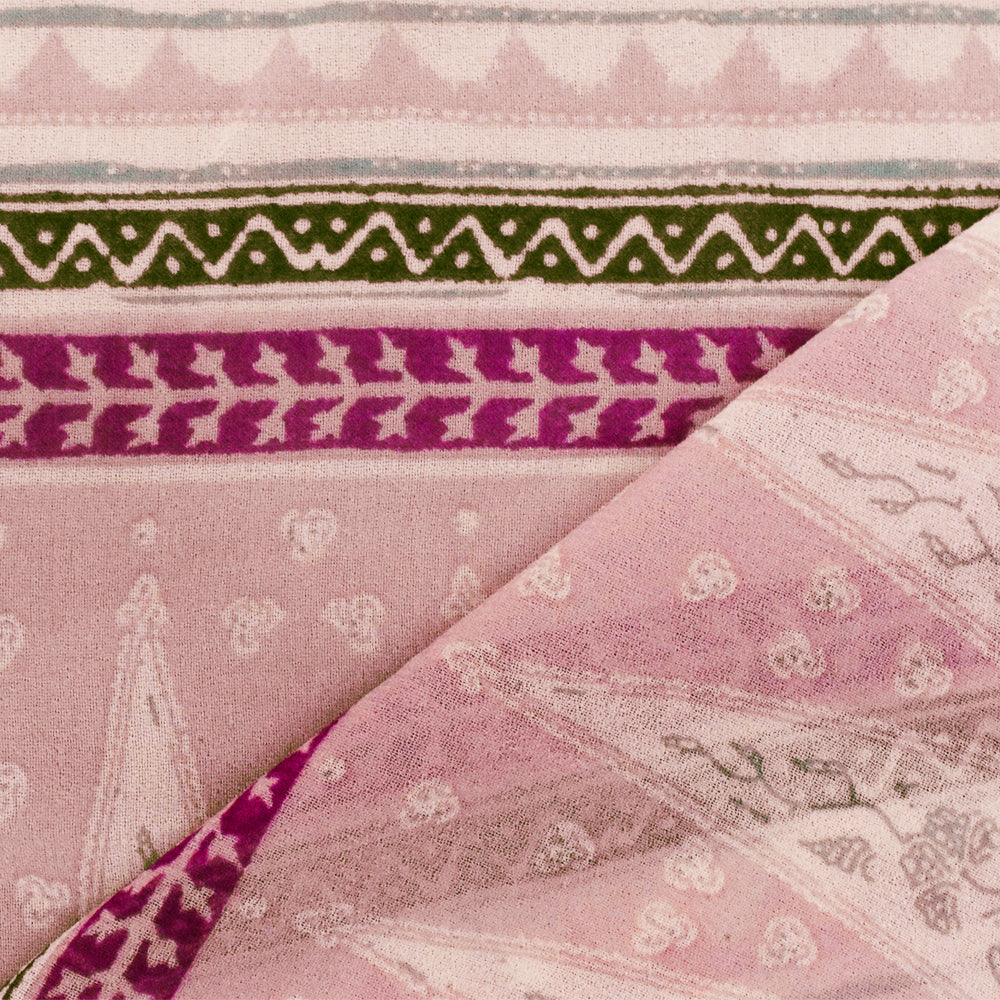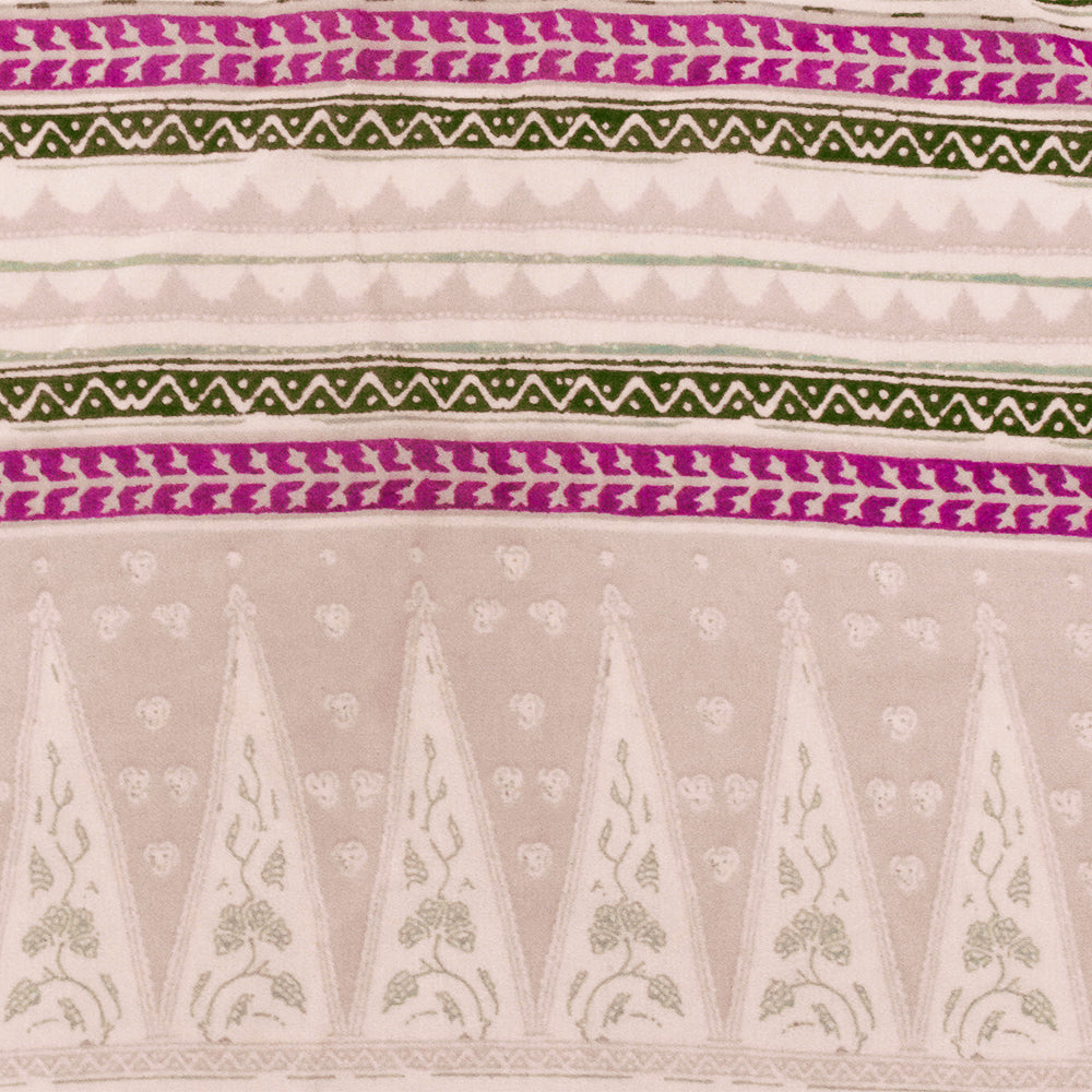 Pink-Ivory-Multi Aztec Stripe Printed Poly Chiffon Woven Fabric