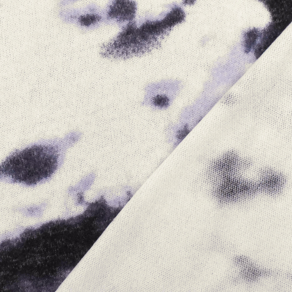 Purple-White-Multi Tie Dye Printed Stretch Rayon Brushed Jersey Knit Fabric