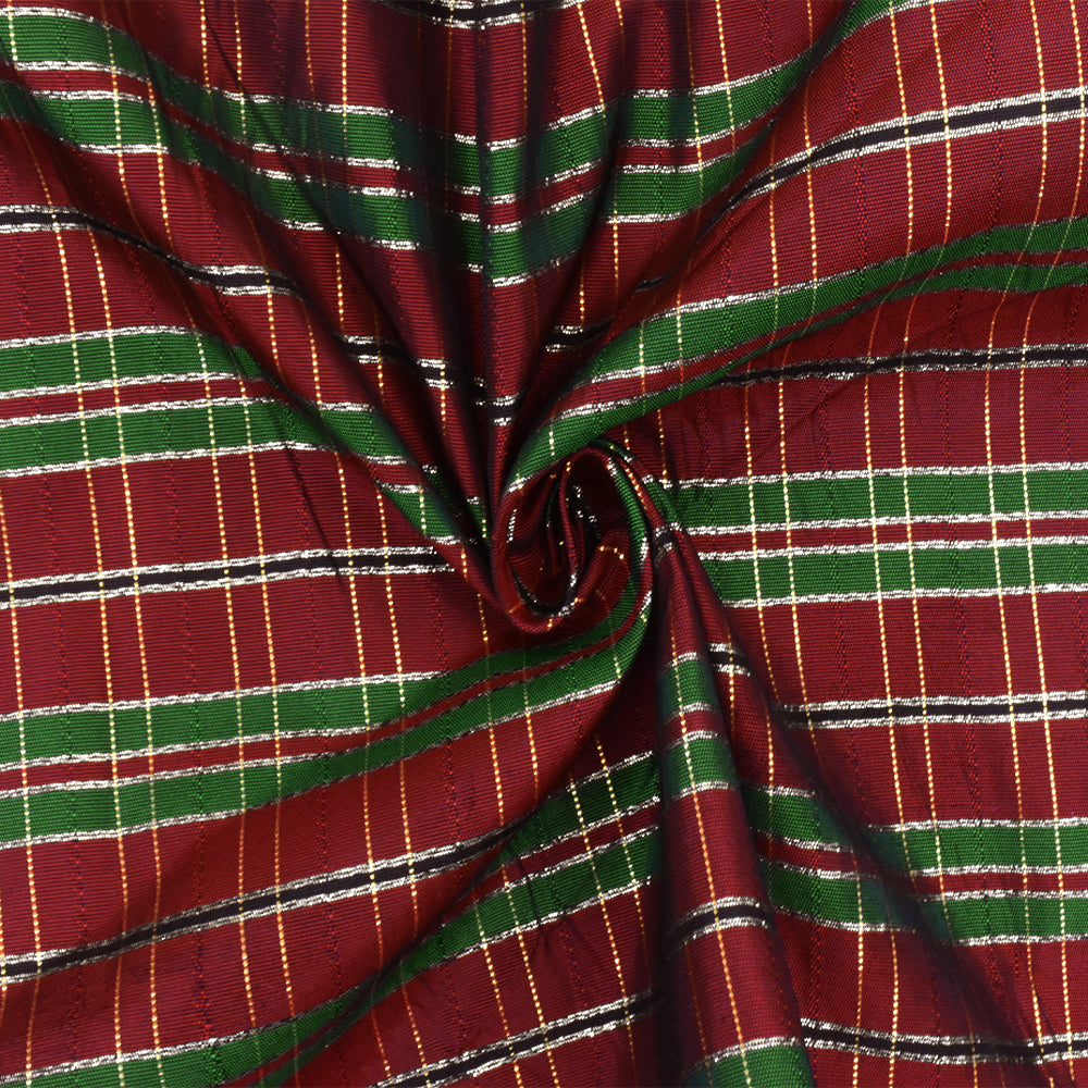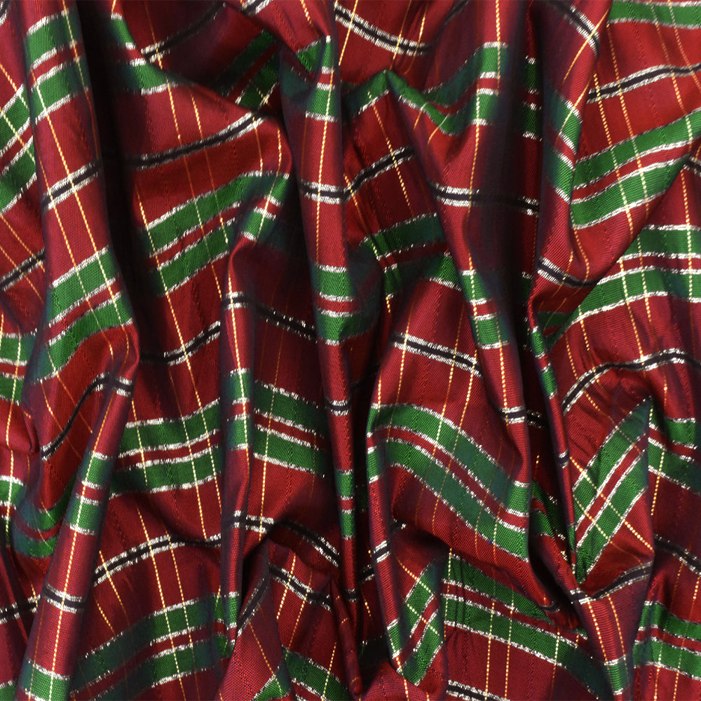 Holiday Red-Green-Multi Plaid Metallic Taffeta Woven Fabric