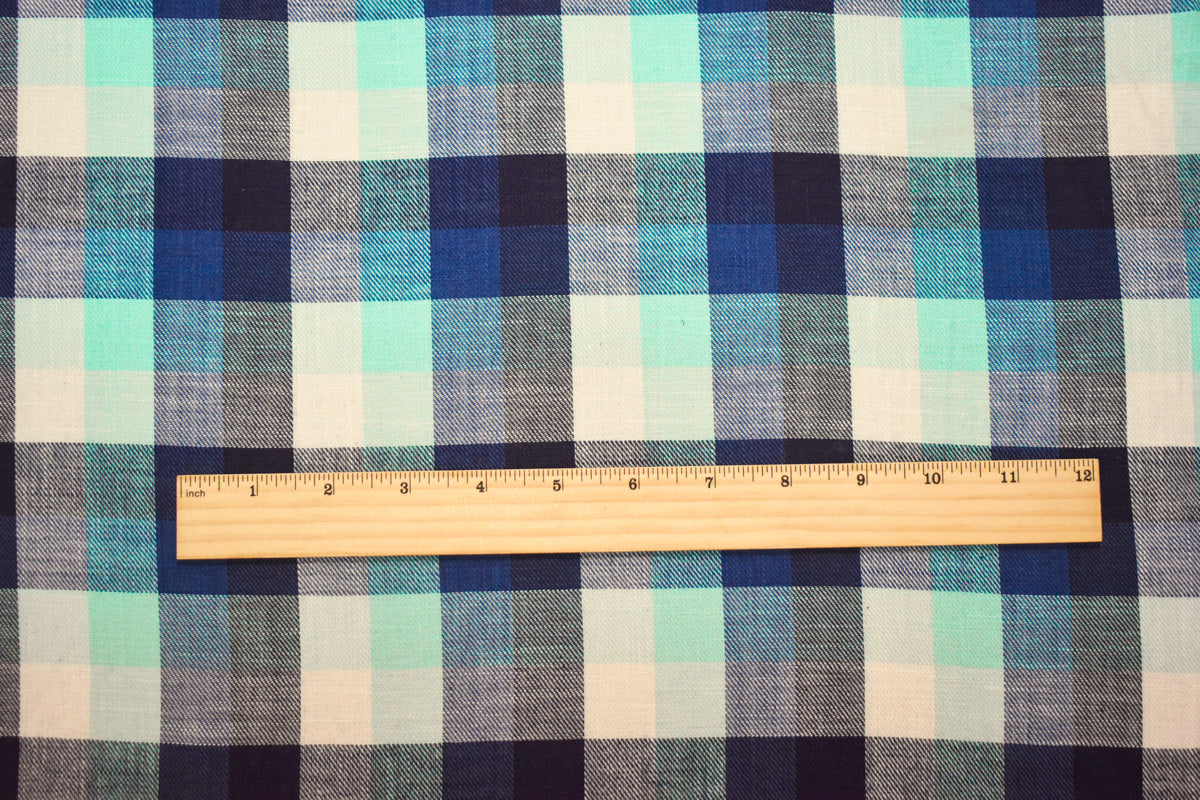 1 1/2 YD PC-Blue Navy-Teal-Multi Famous Maker Cotton Plaid Shirting Woven Fabric