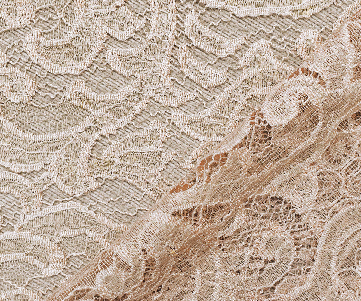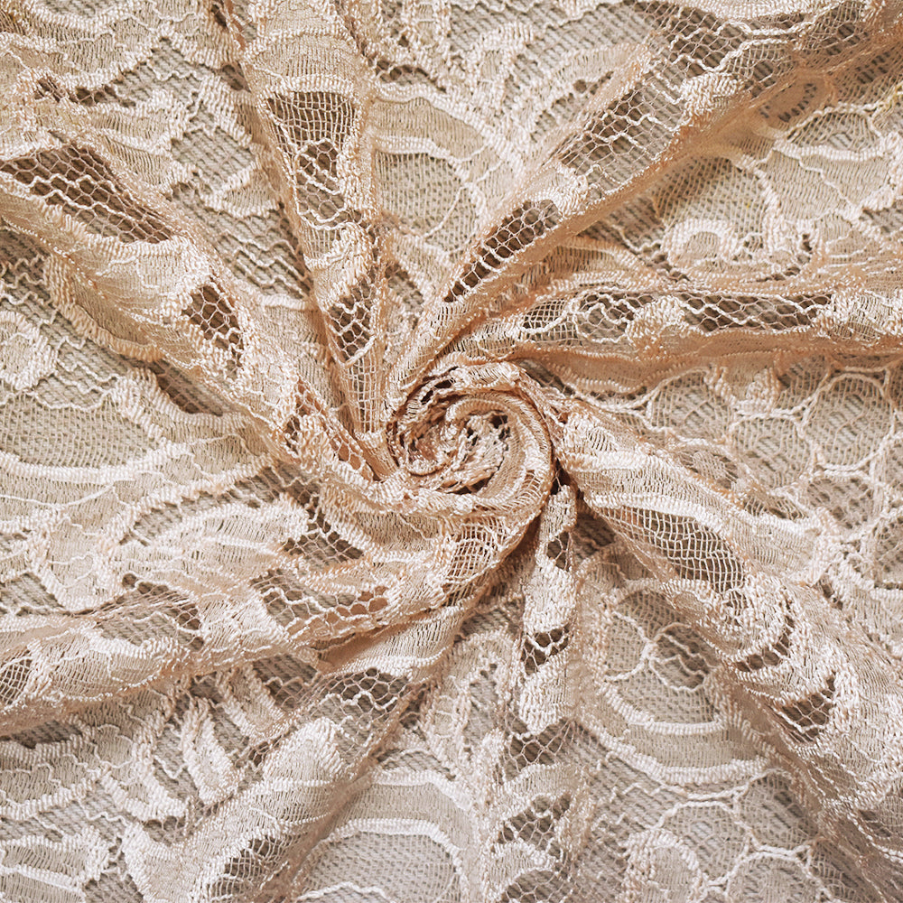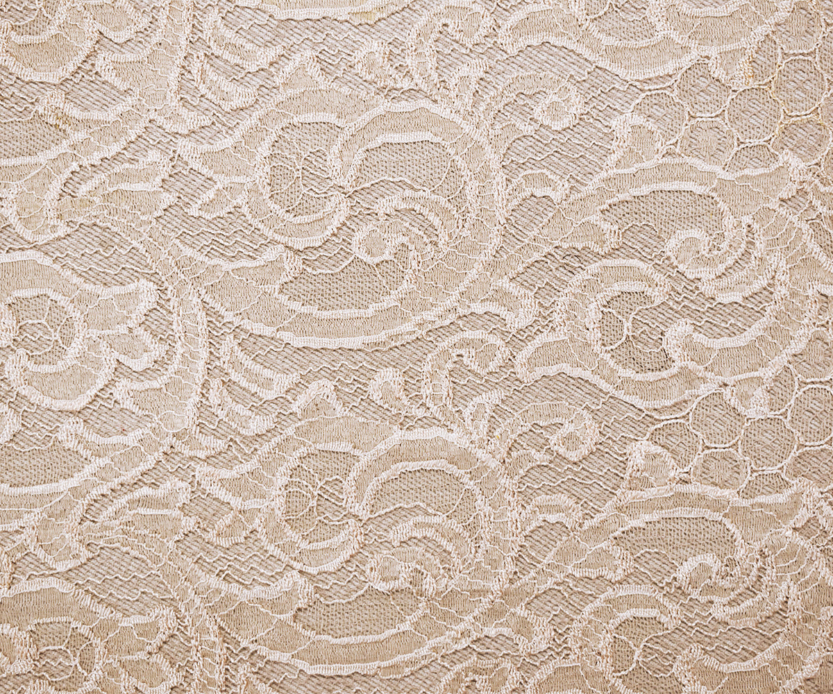 2 YD PC-Light Beige Cotton-Poly Fancy Scroll Crochet Lace Knit Fabric