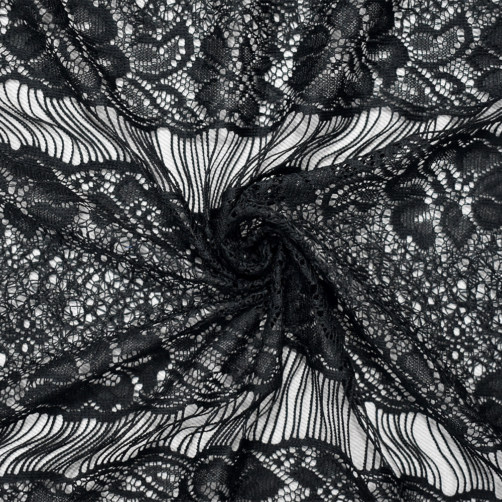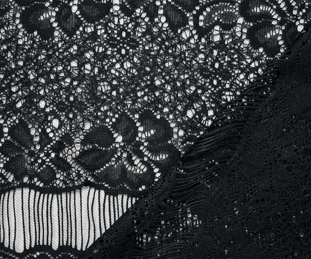 Black Polyester Floral Stripe Crochet Lace Knit Fabric
