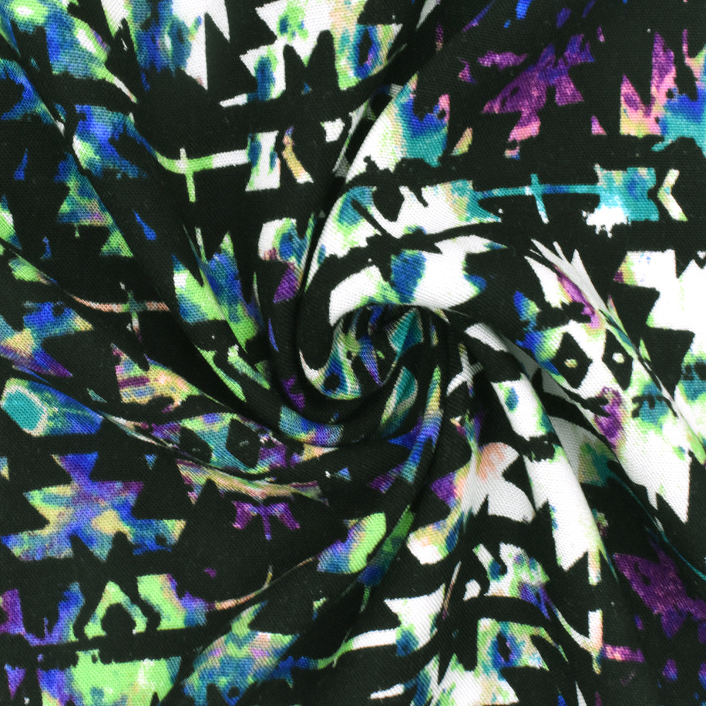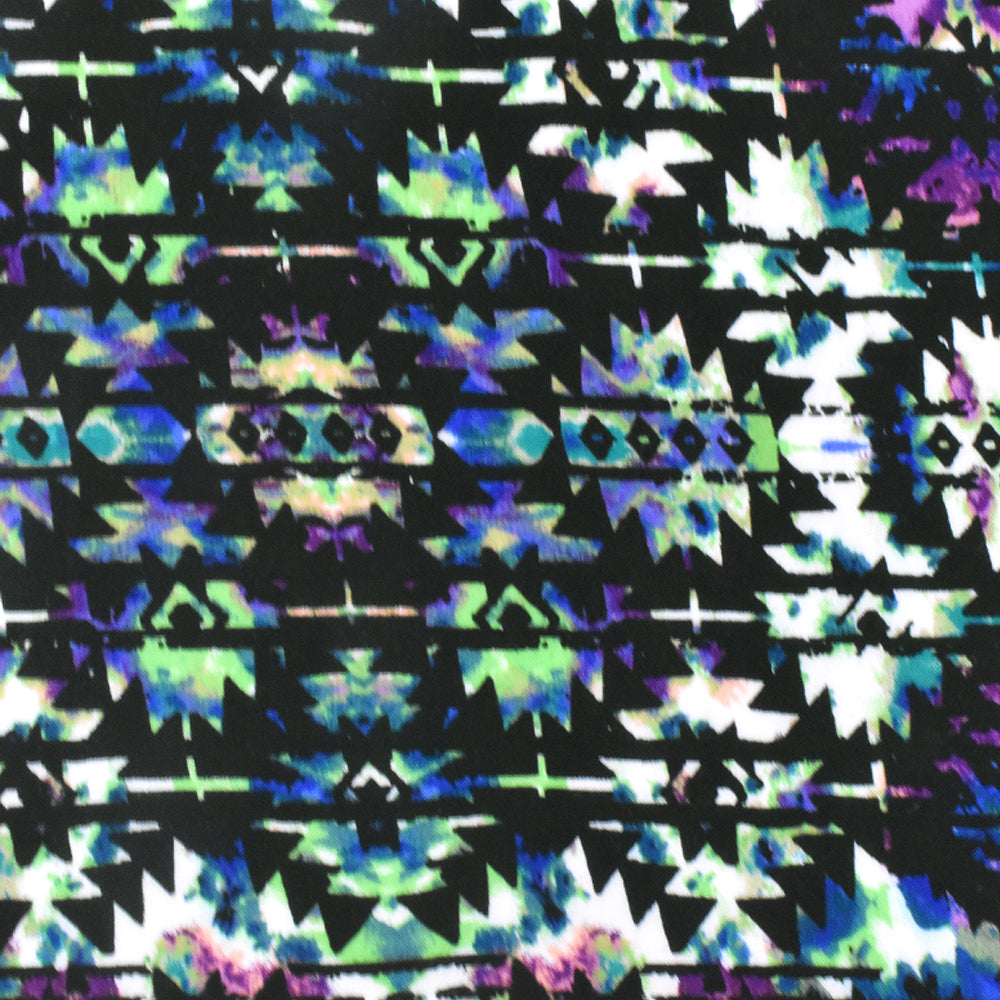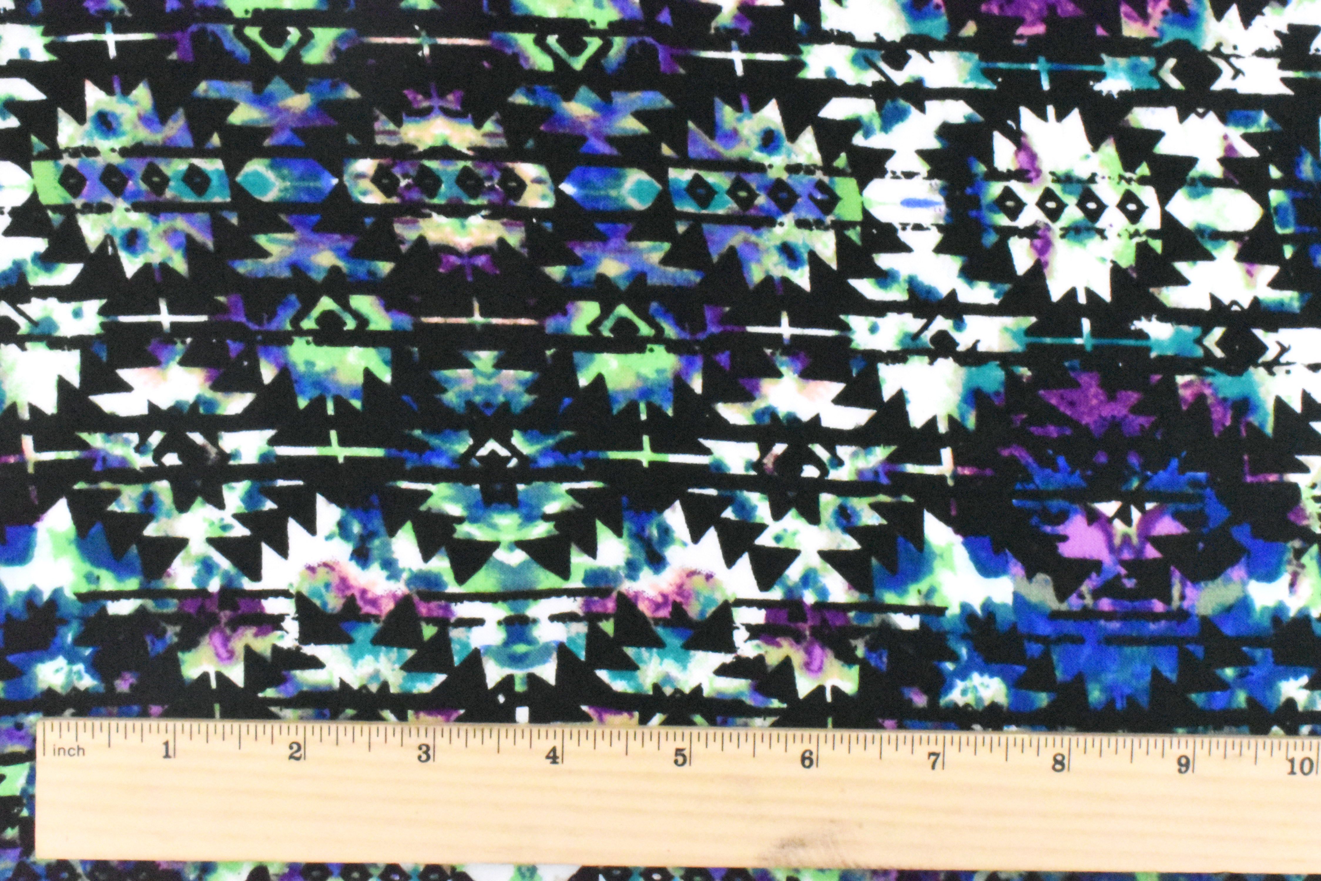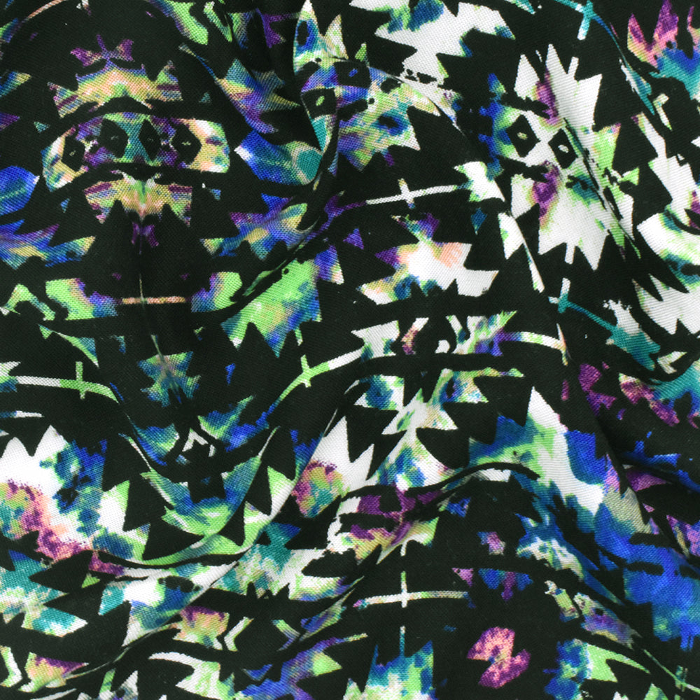 Black-Green-Multi Aztec Tie Dye Printed Rayon Challis Woven Fabric