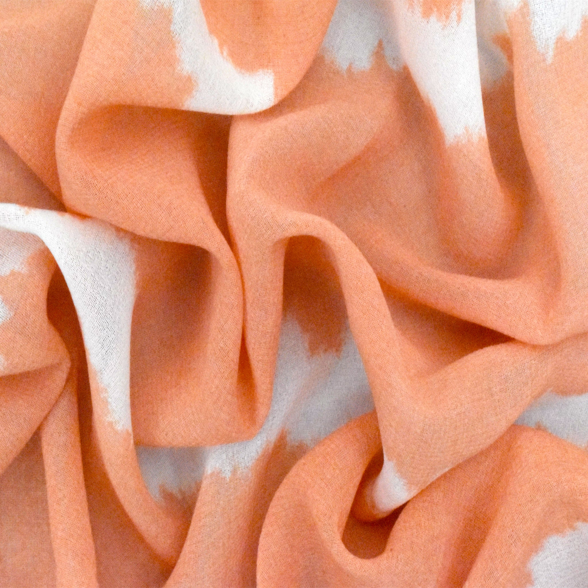 Citrus Orange-Ivory Tie Dye Printed Poly Chiffon Woven Fabric