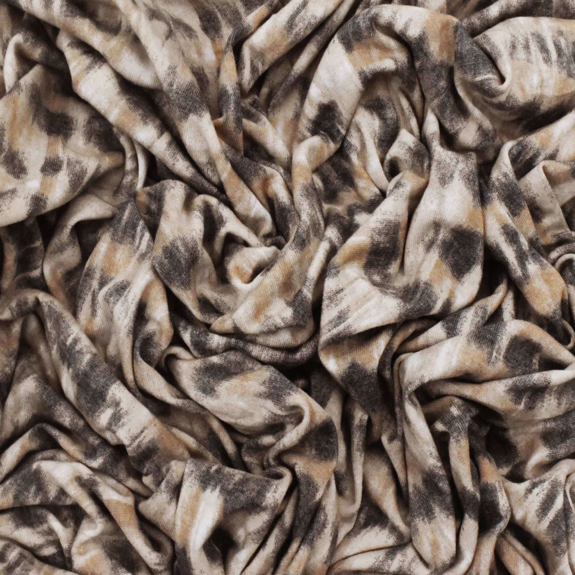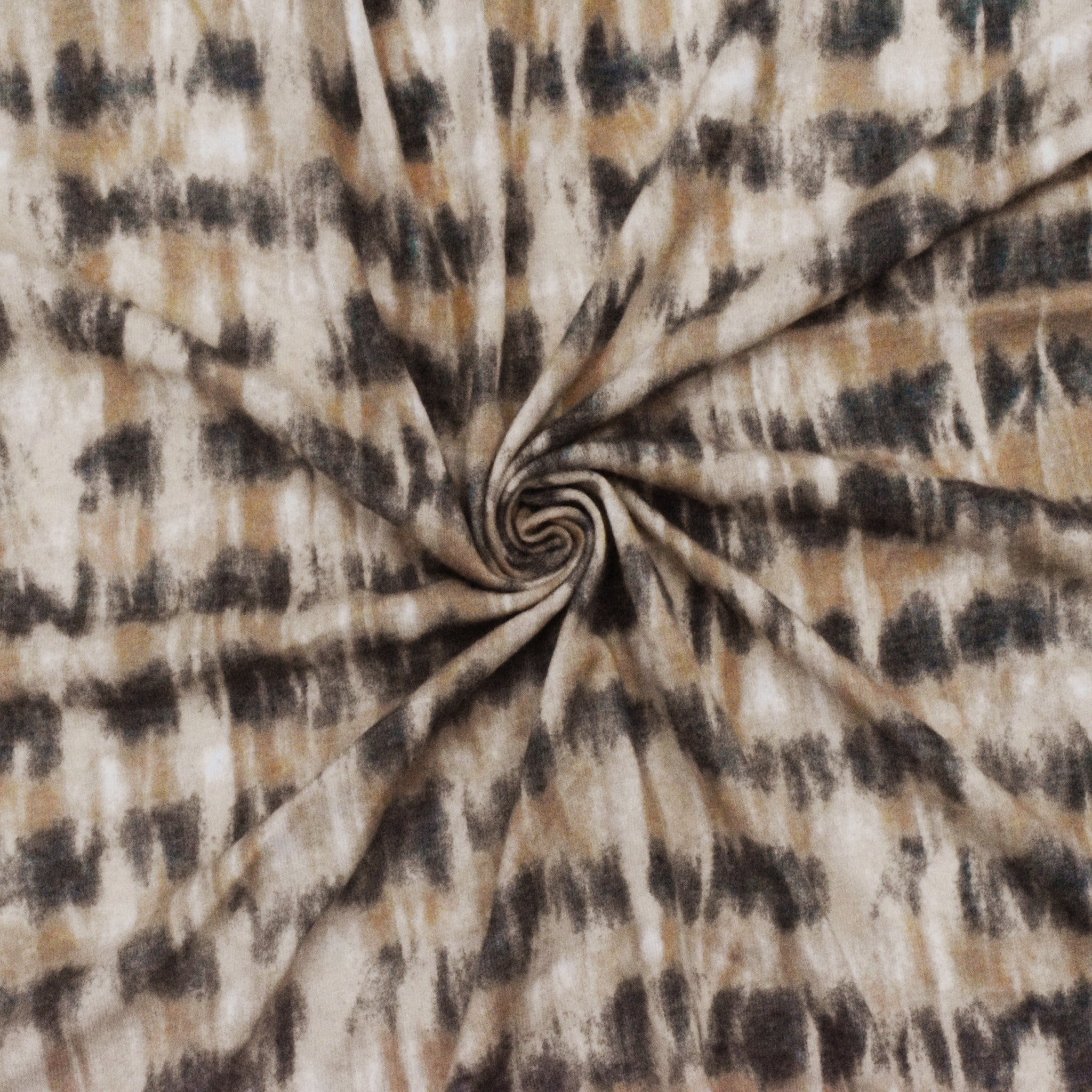 Latte Beige-Chalk Black-White Printed Tie Dye Jersey Knit Fabric