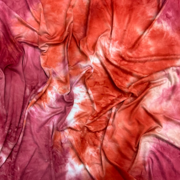 Red-Pink-Multi Poly Stretch Spandex Tie Dye Double Brushed Jersey Knit Fabric