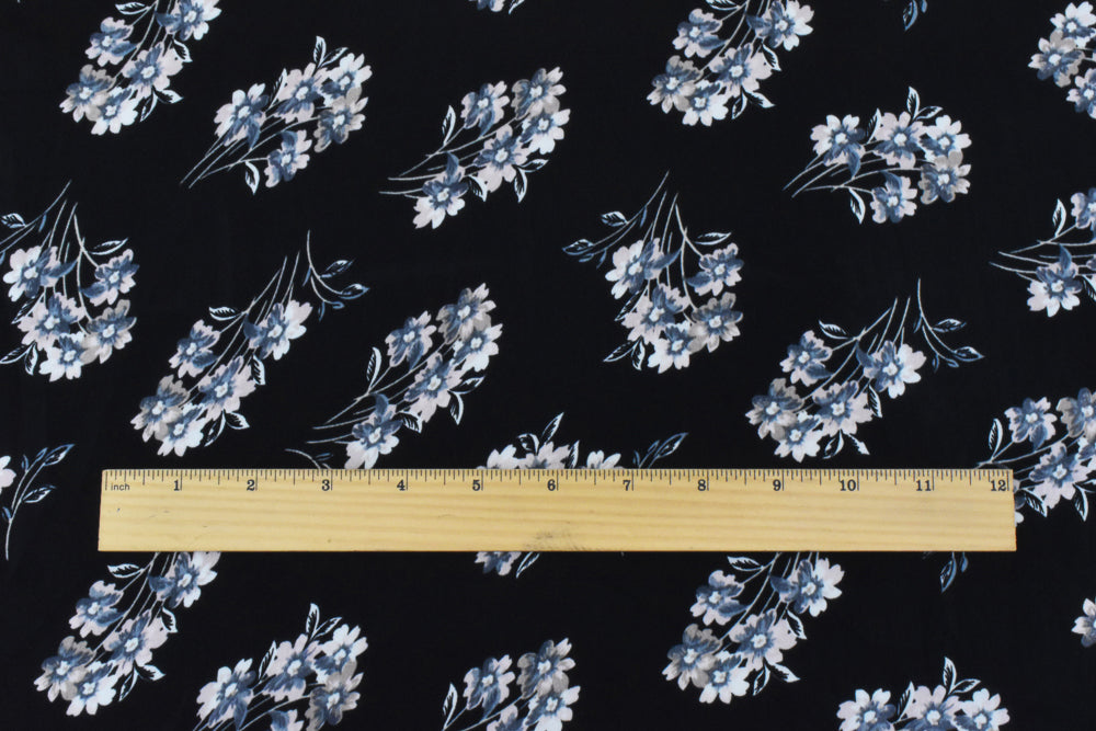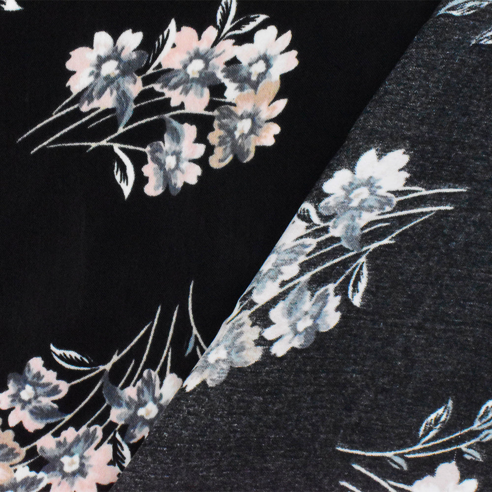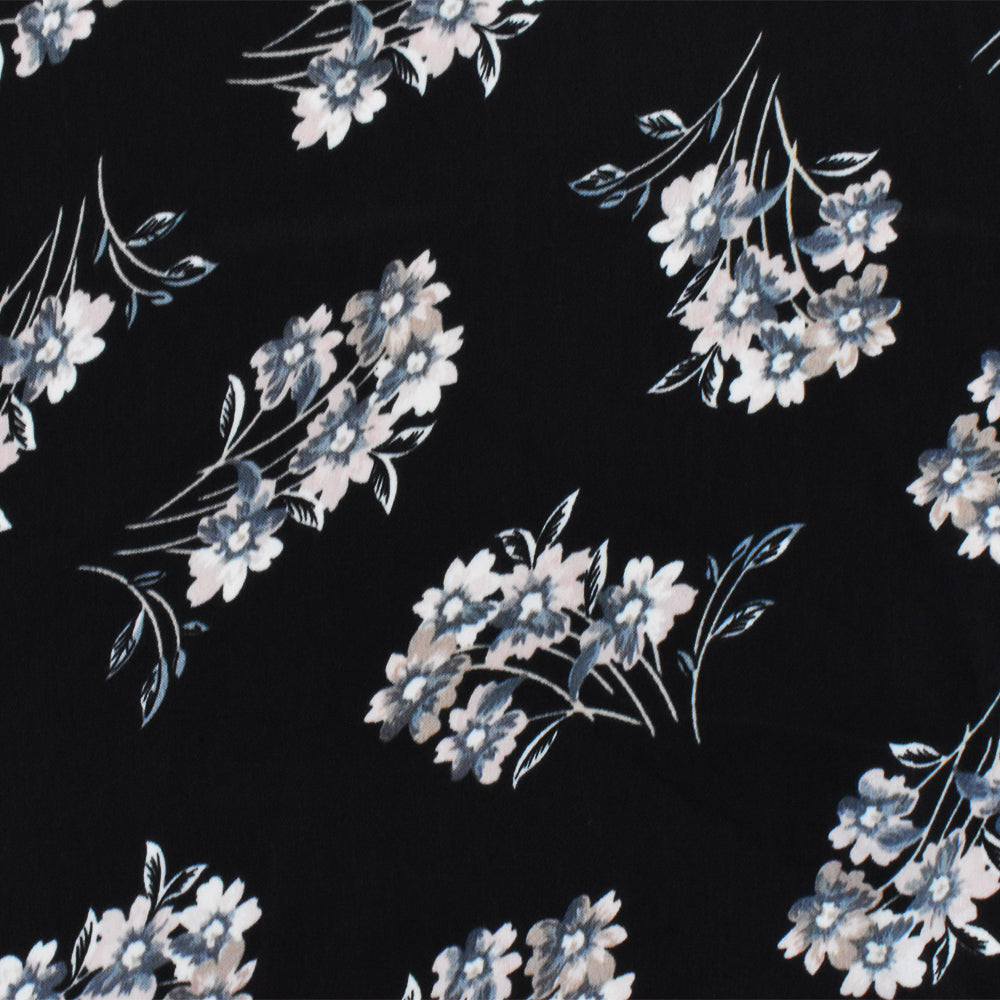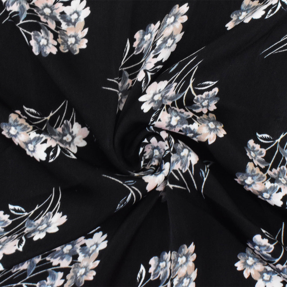 Black-Pink-Gray Poly Floral Printed Twill Satin Woven Fabric