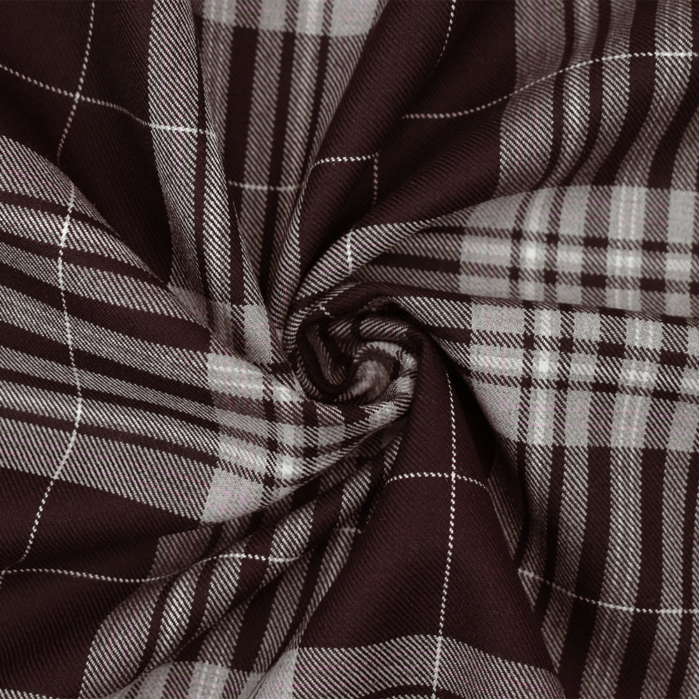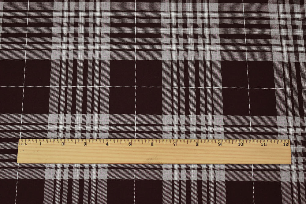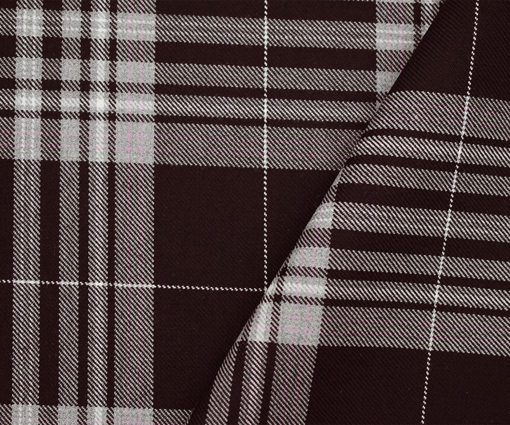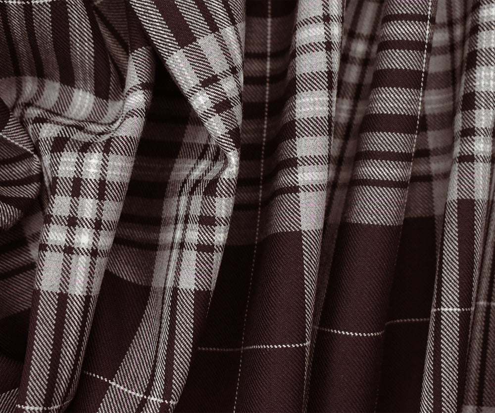 Brown-Gray-Multi Wool Polyester Plaid Woven Twill Suiting Fabric