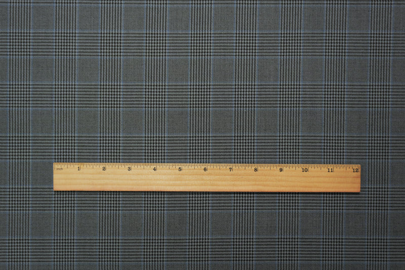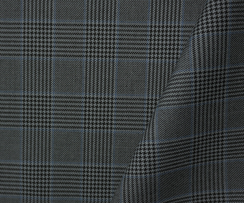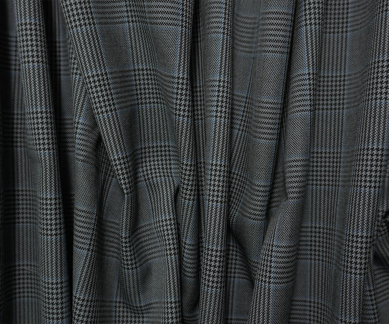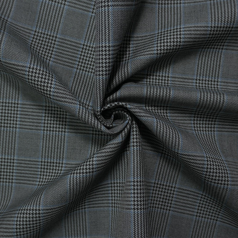 Gray-Black-Blue Poly Wool Plaid-Check Twill Woven Suiting Fabric