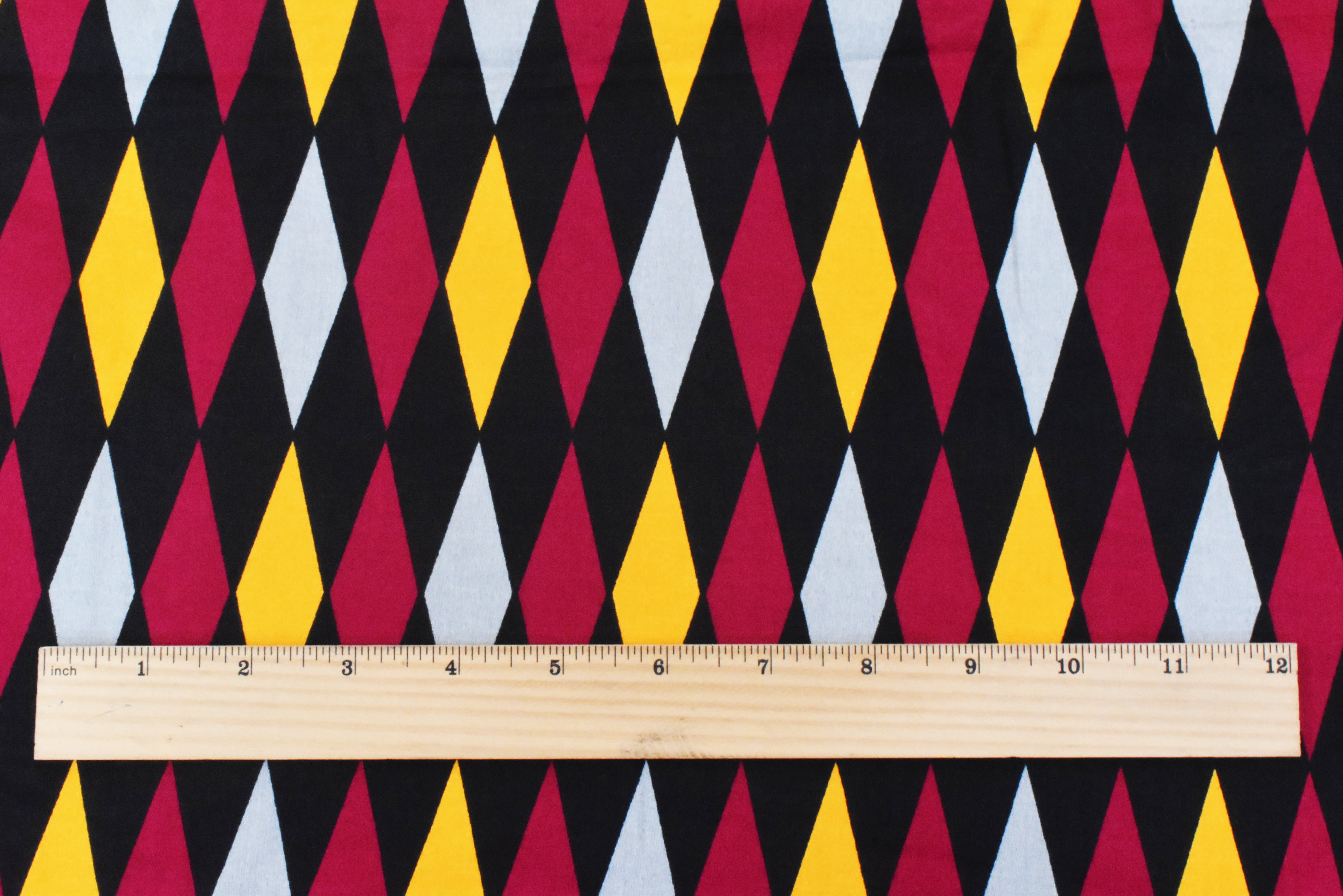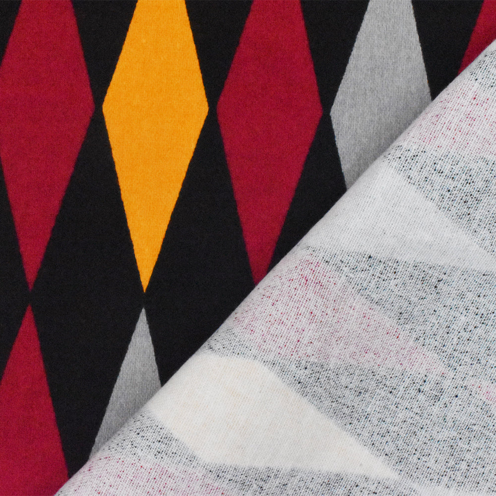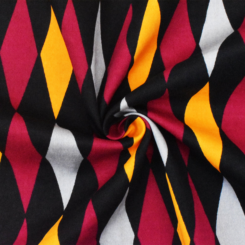 Red-Black-Multi Diamond Printed Stretch Cotton Spandex Twill Sateen Fabric