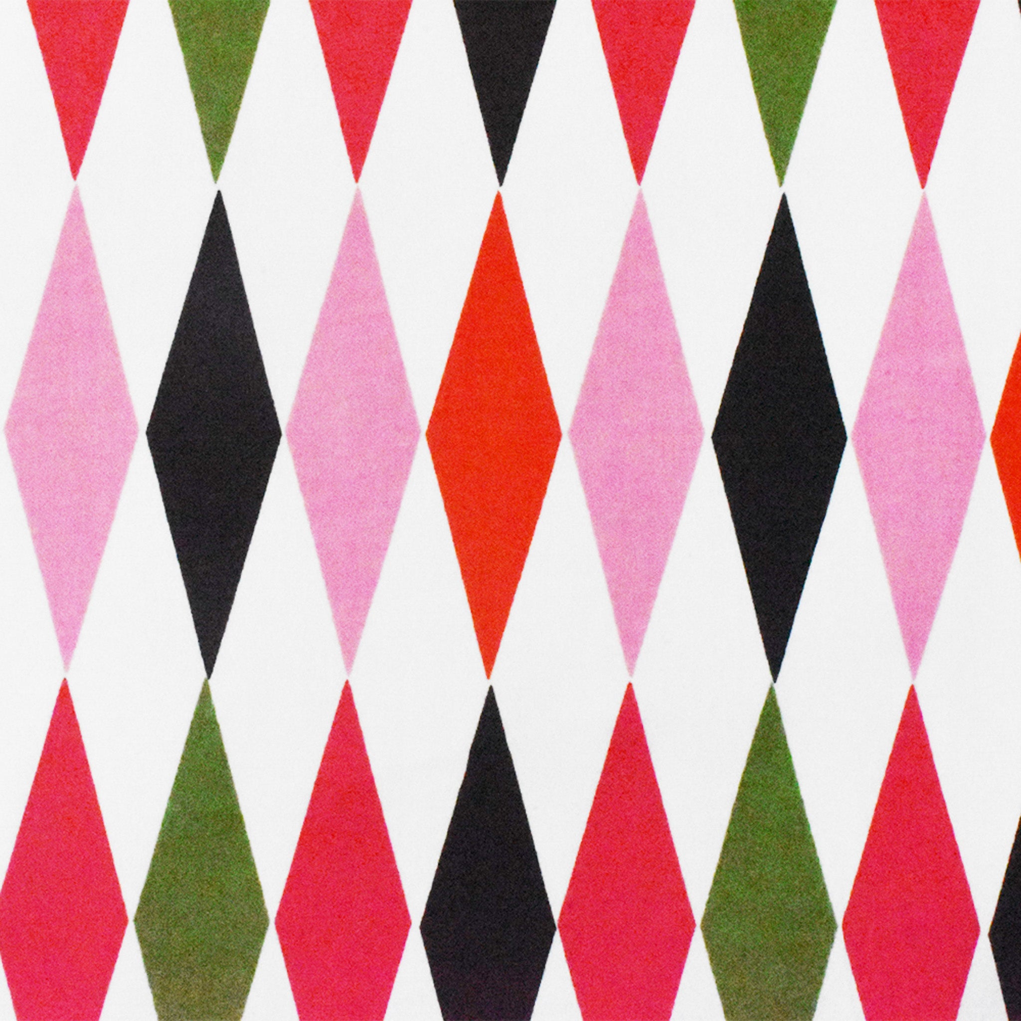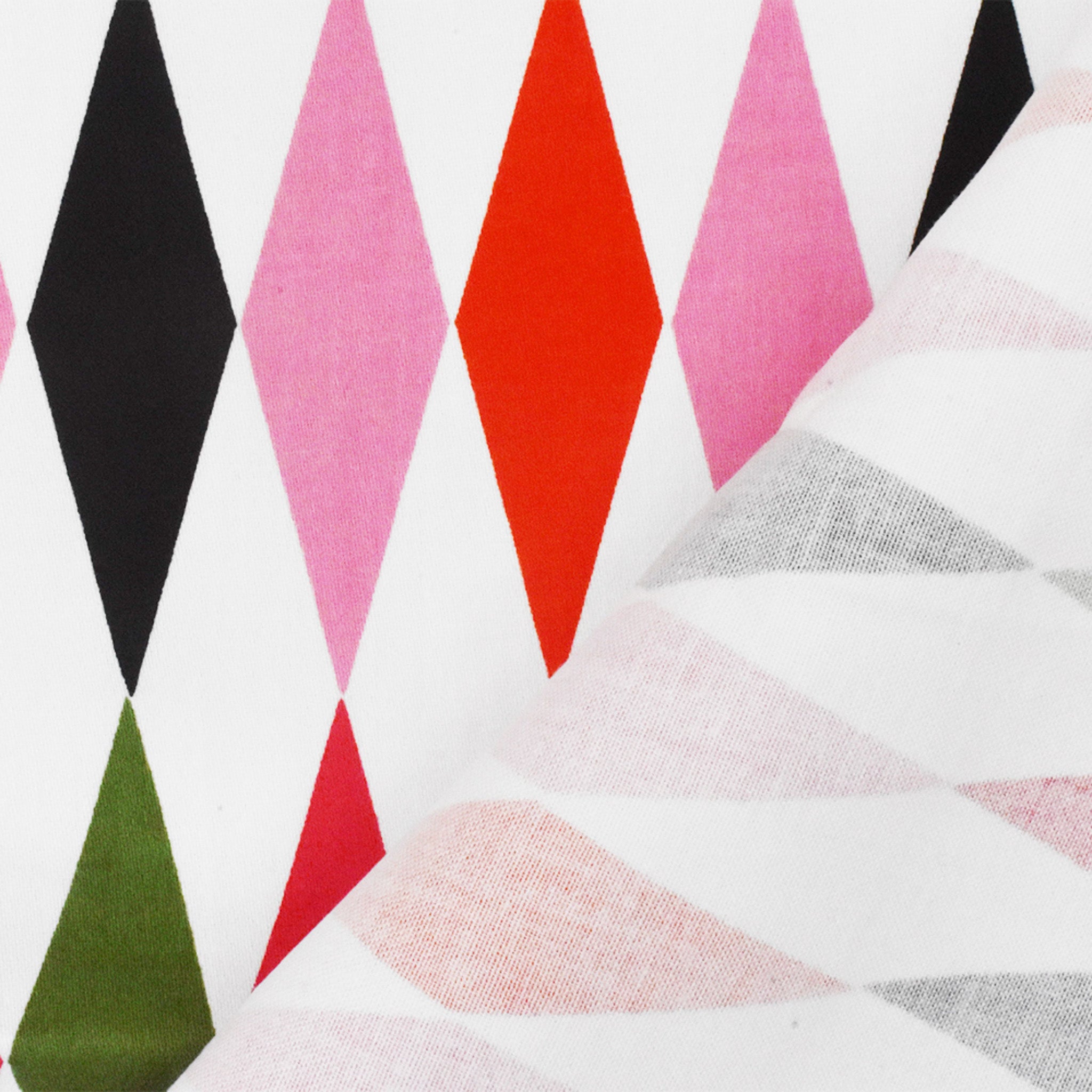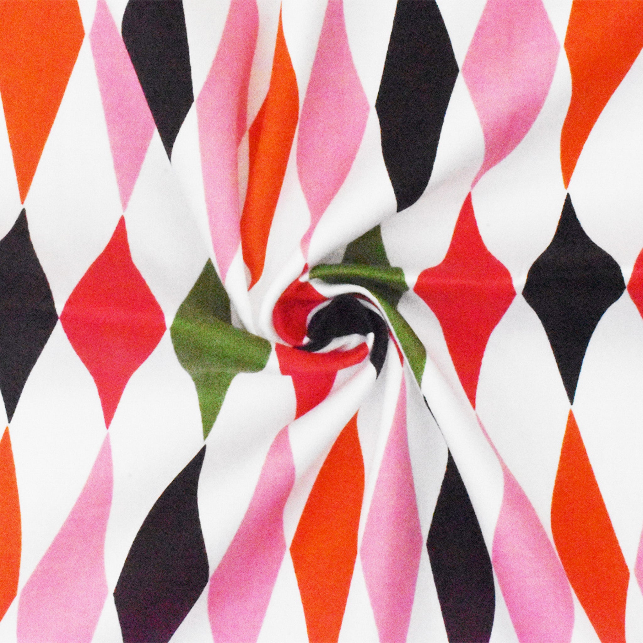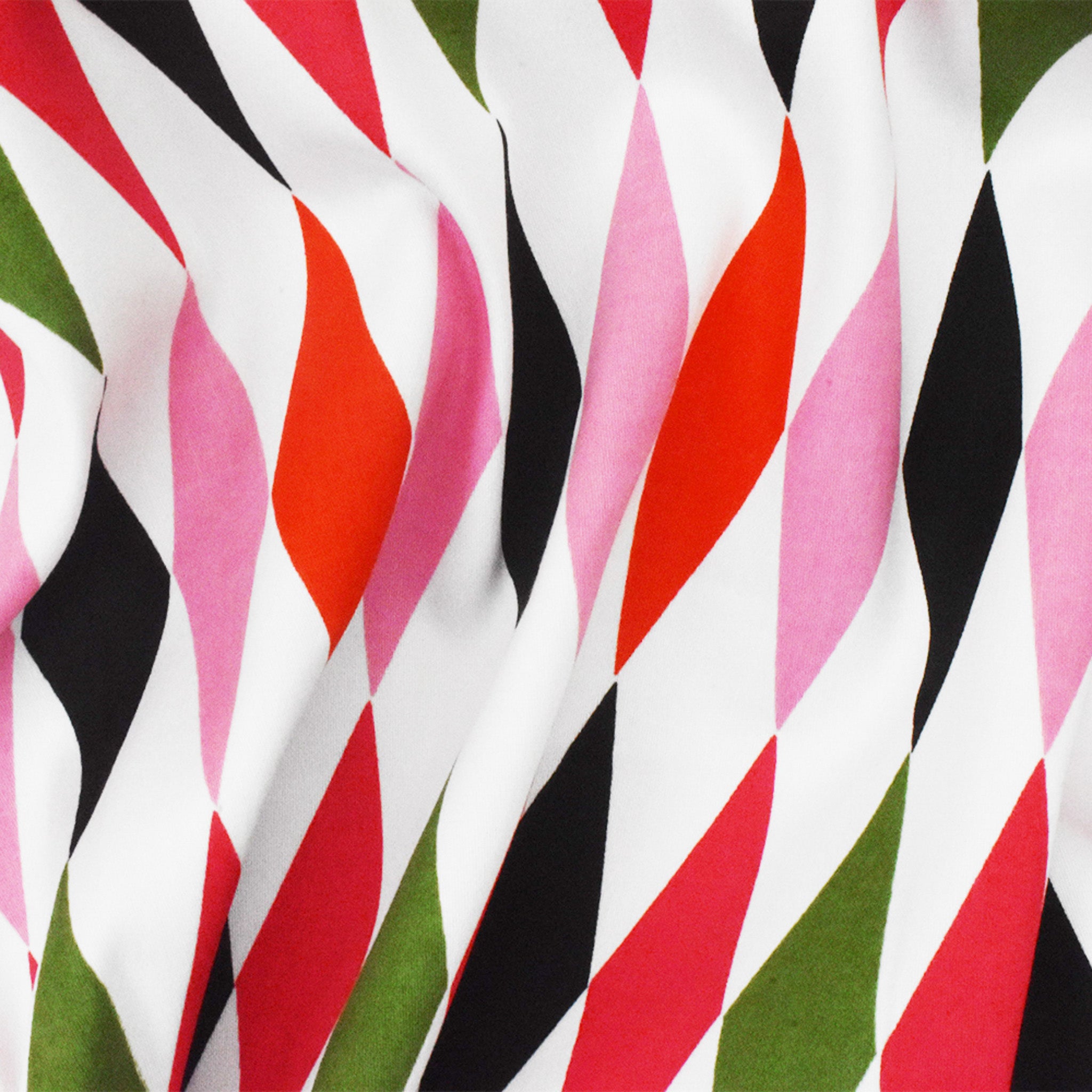 White-Red-Multi Diamond Printed Stretch Cotton Twill Sateen Woven Fabric