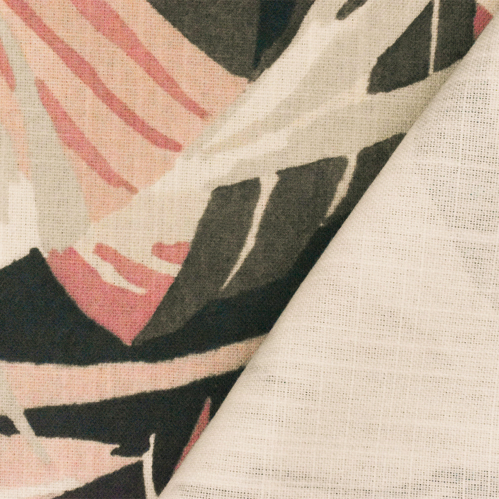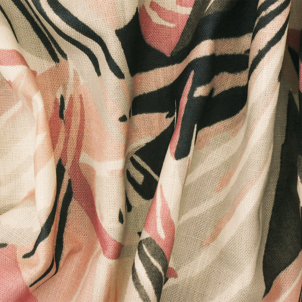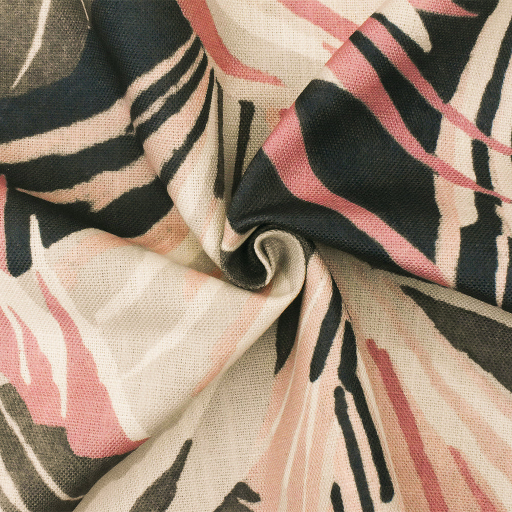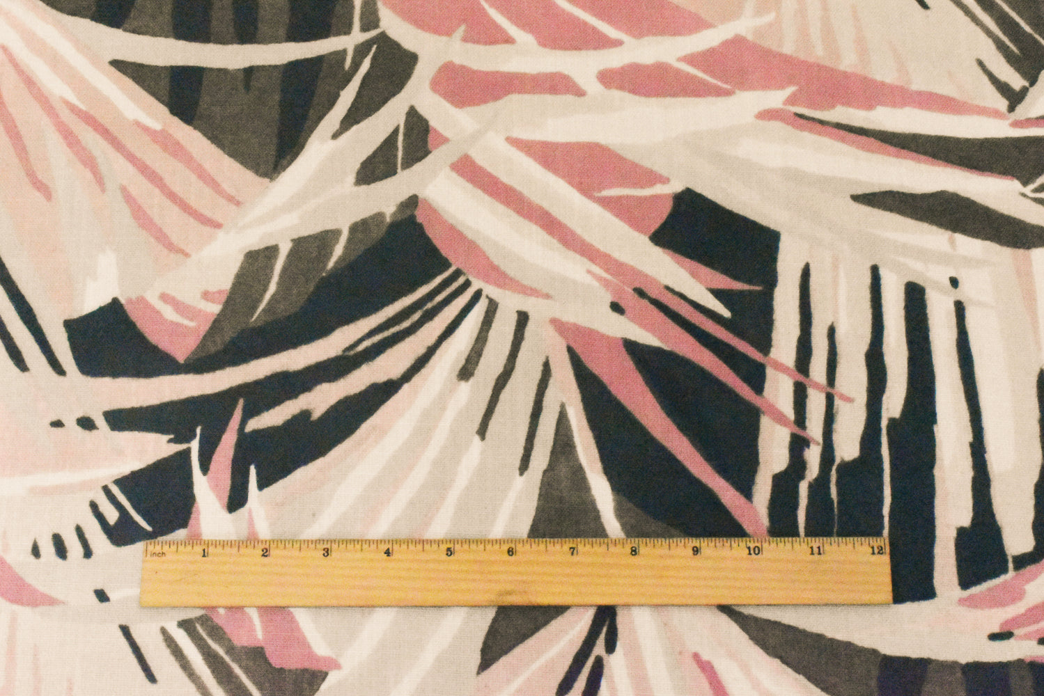 Pink-Black-Multi Abstract Leaf Printed Poly Woven Home Decorating Fabric