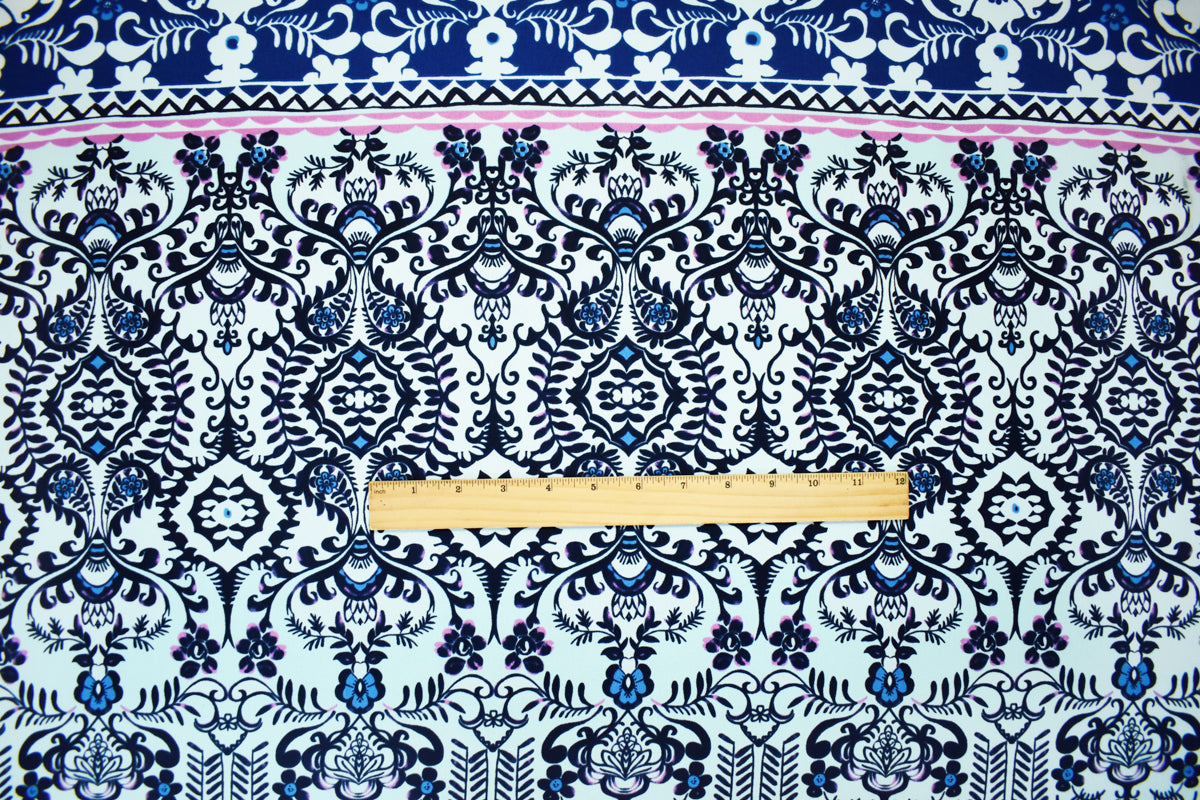 Blue-Multi Poly Abstract Floral Printed Moss Crepe Woven Fabric