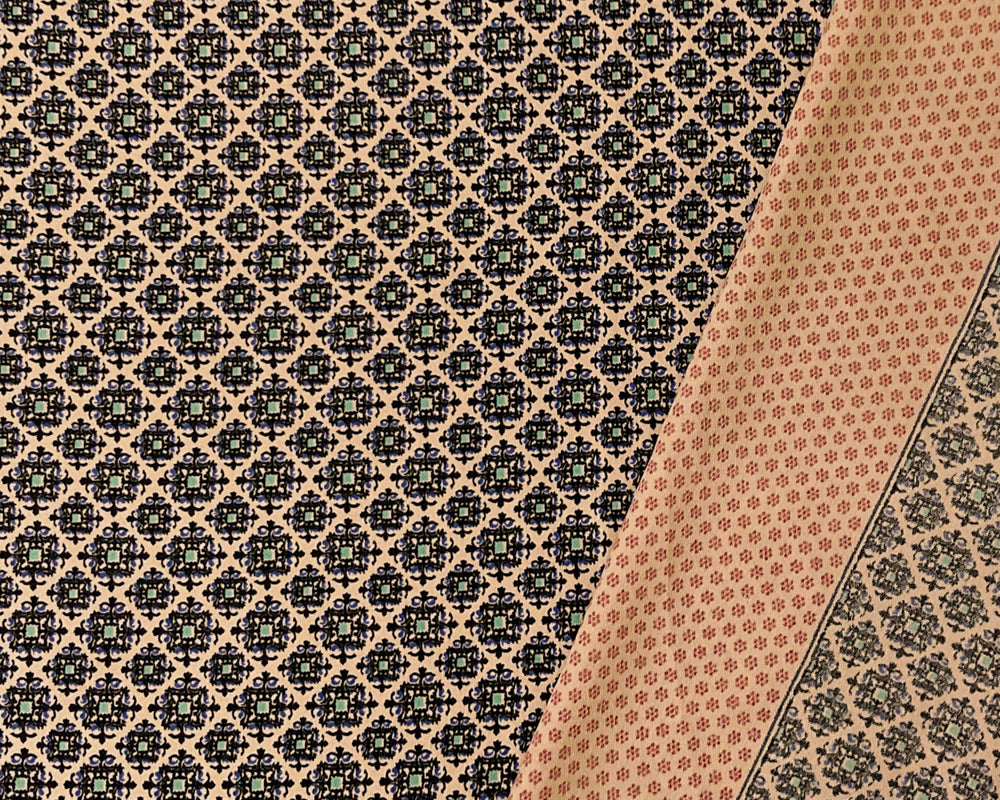 -Beige-Blue-Multi Poly Moroccan Border Printed Dobby Crepe Woven Fabric