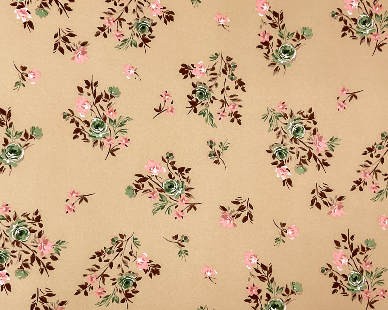 Beige-Multi Poly Spandex Stretch Floral Print Brushed Jersey Knit Fabric