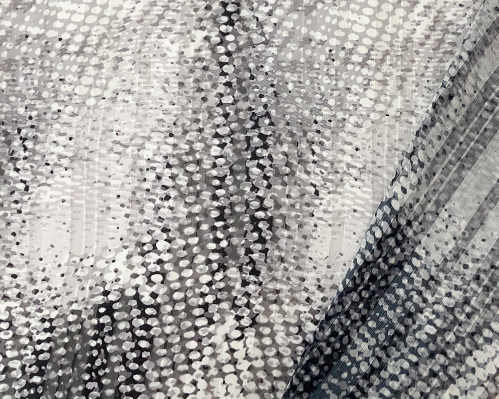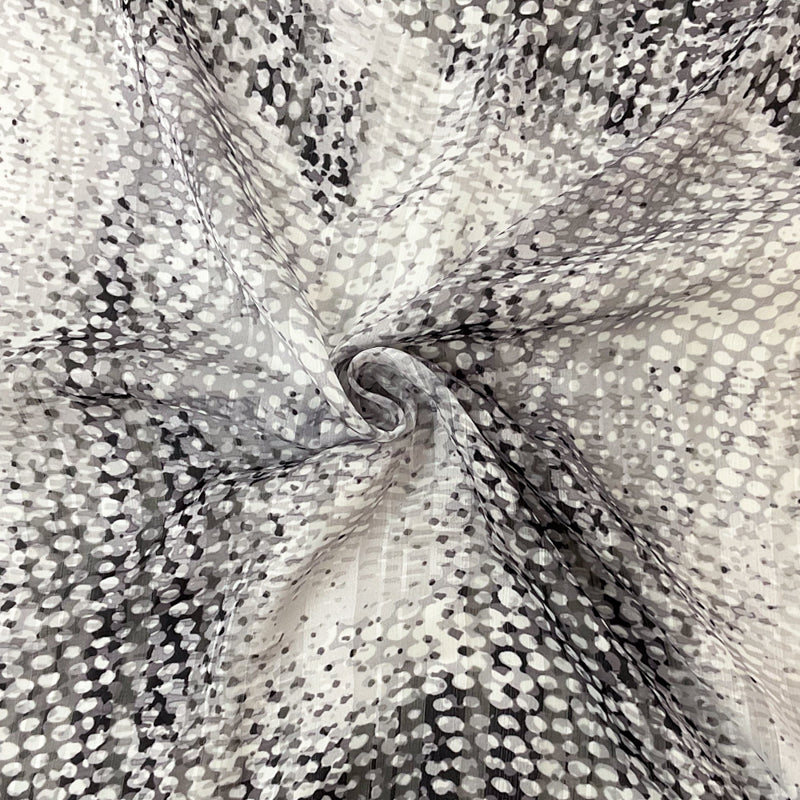 Black-mulita Poly Abstract Print Satin Stripe Chiffon Woven Fabric