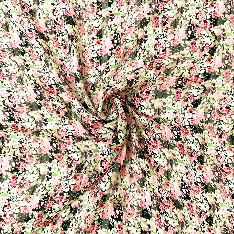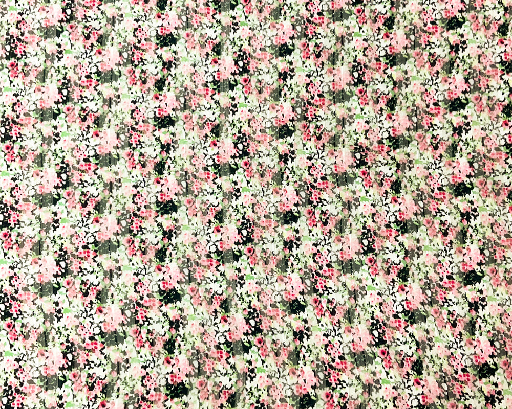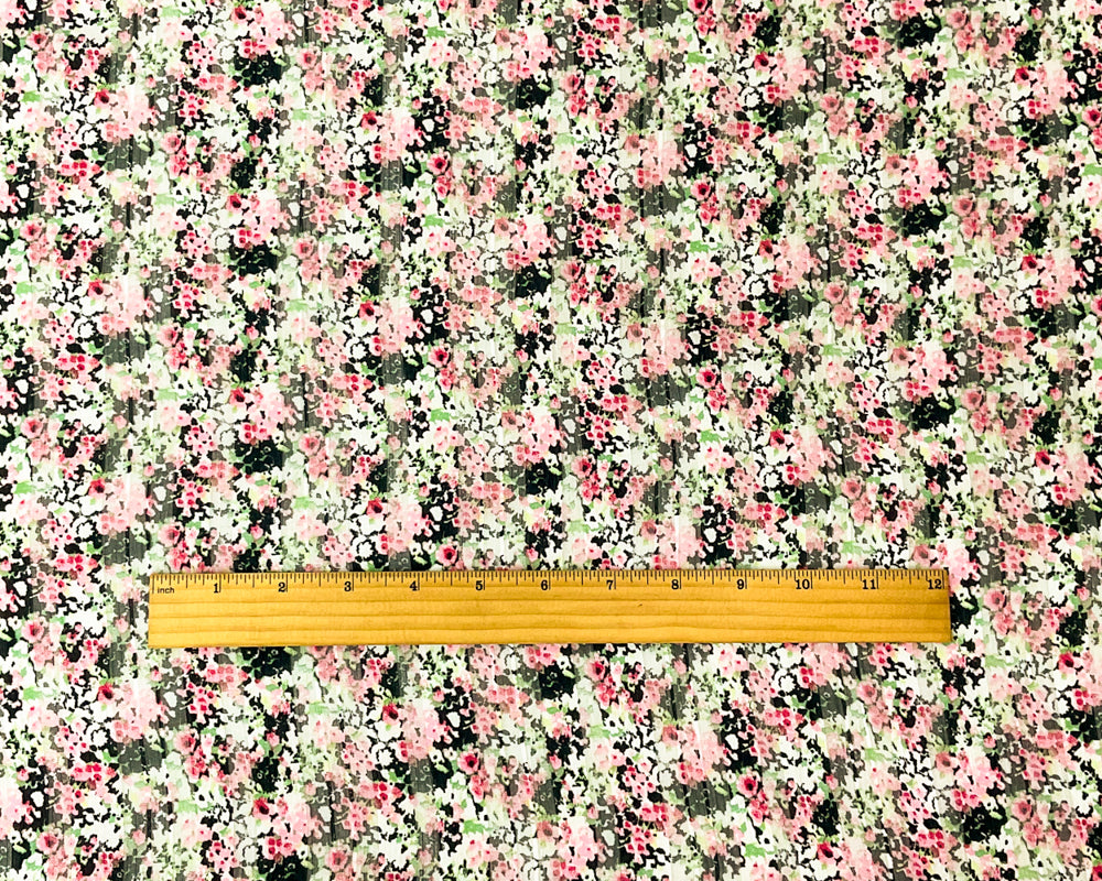 Black-Multi Poly Floral Printed Satin Stripe Chiffon Woven Fabric