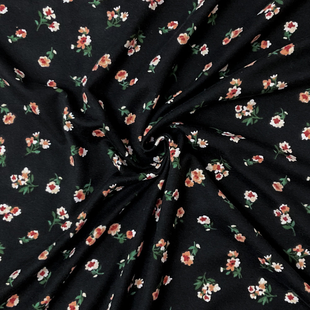 Black-Multi Poly Stretch Spandex Floral Print DB Jersey Knit Fabric