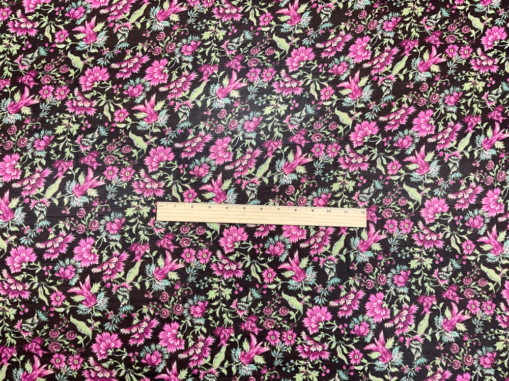 Black-Pink-Multi Poly Floral Printed Chiffon Woven Fabric