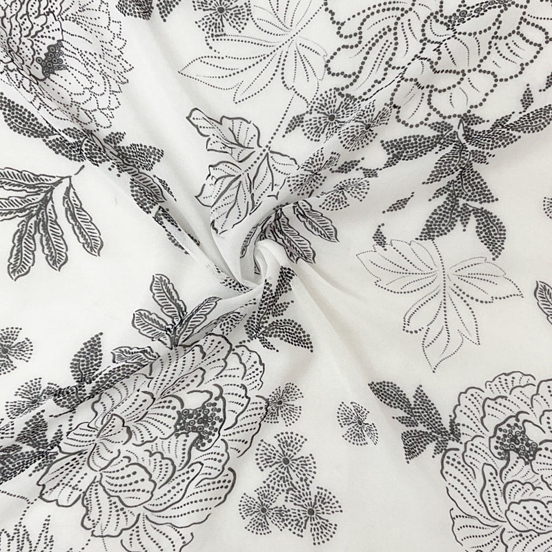 Black-White Abstract Floral Printed Pebble Chiffon Woven Fabric