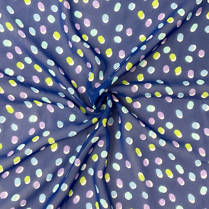 Blue-Green-Multi Poly Dot Printed Chiffon Woven Fabric