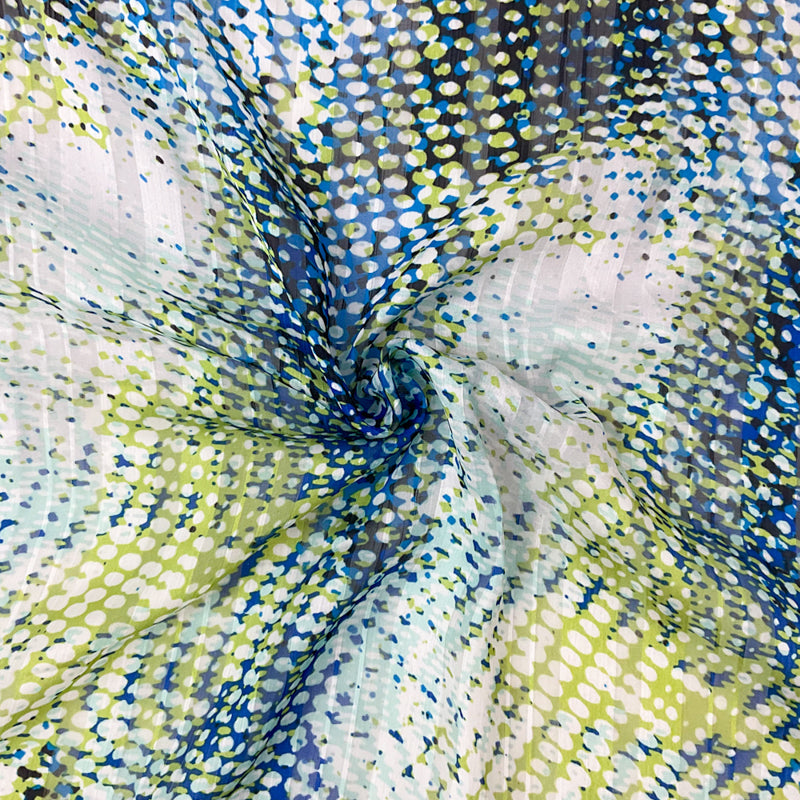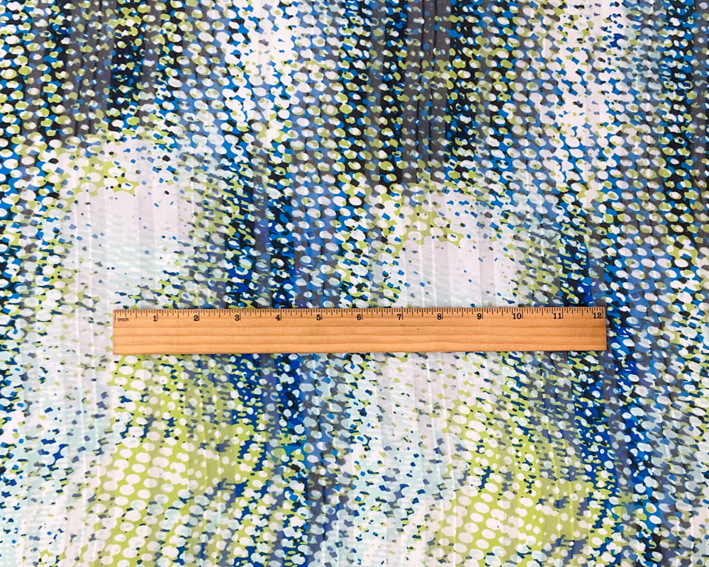 -Green-Blue-Multi Poly Abstract Printed Stripe Woven Fabric