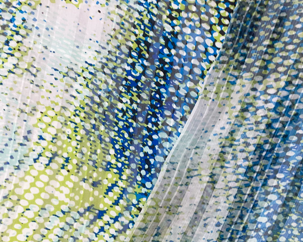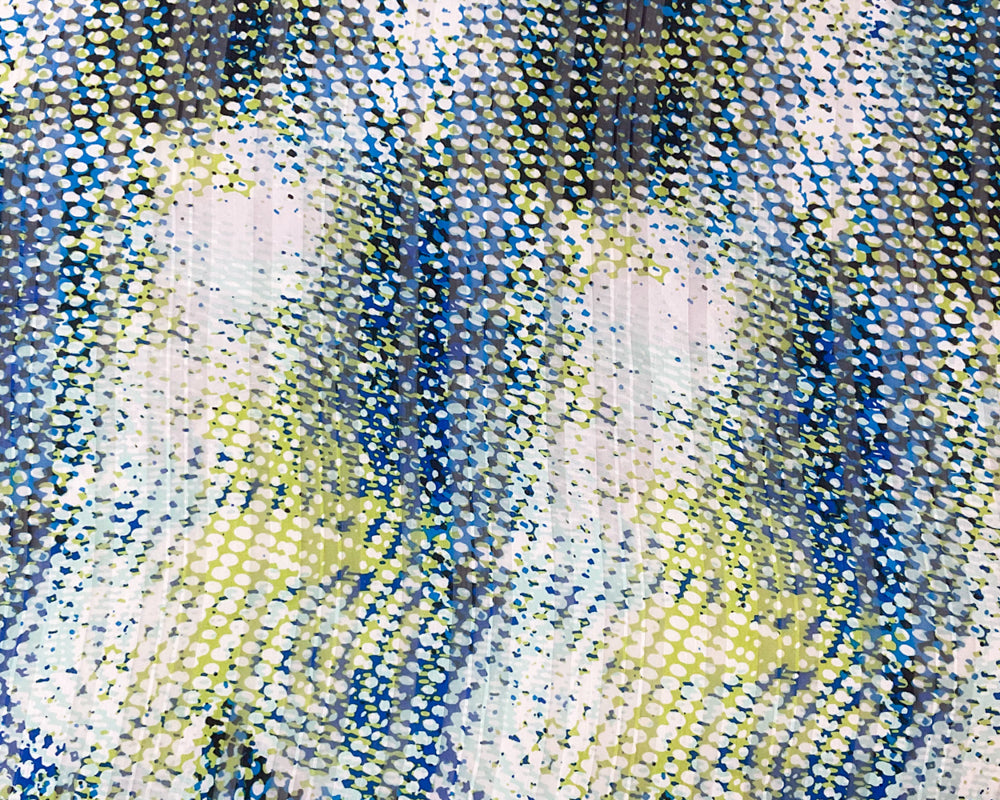 Blue-Multi Poly Abstract Print Stripe Satin Chiffon Woven Fabric