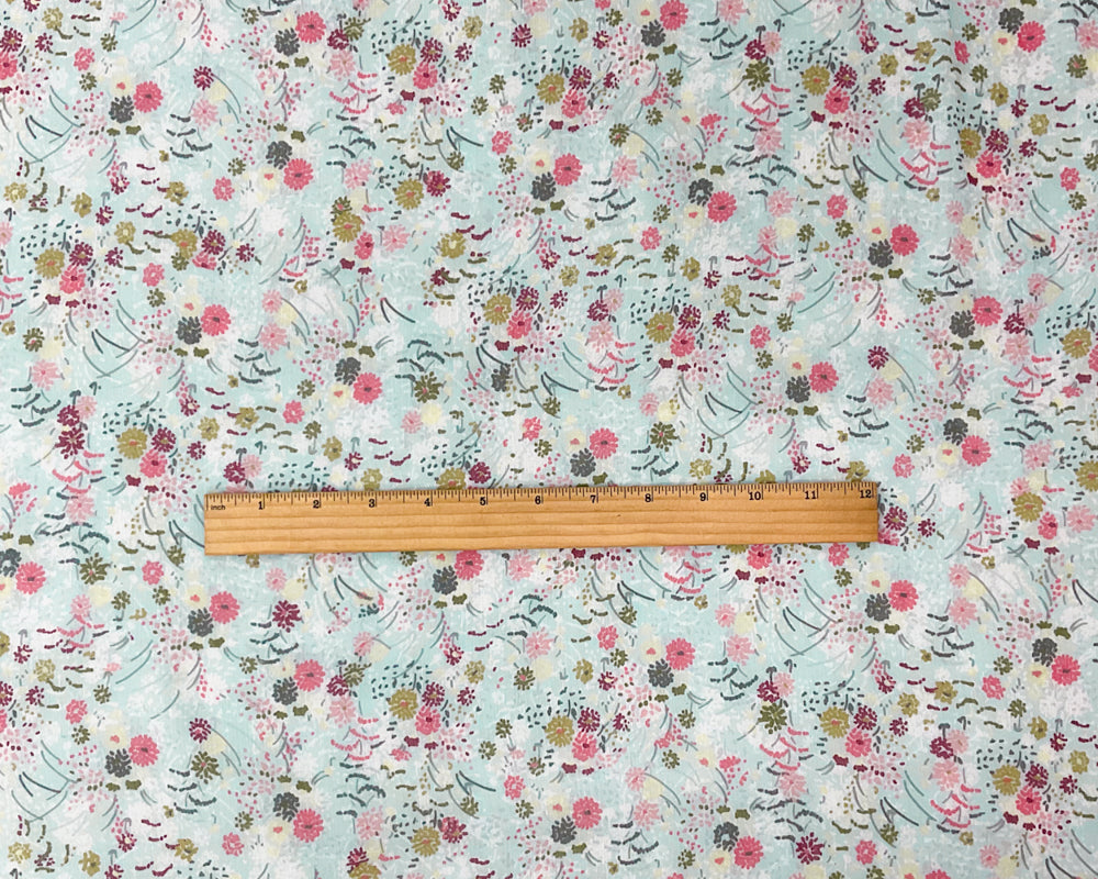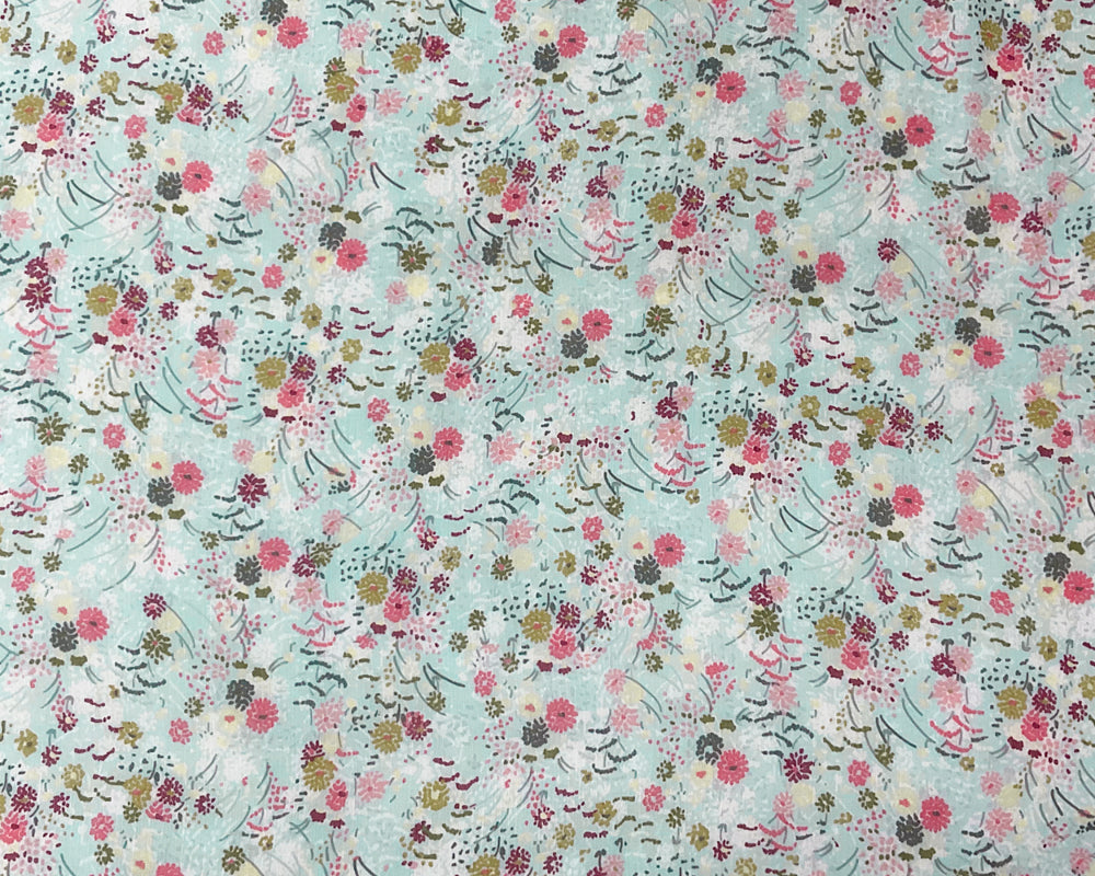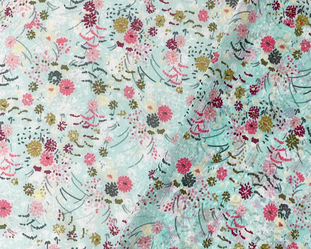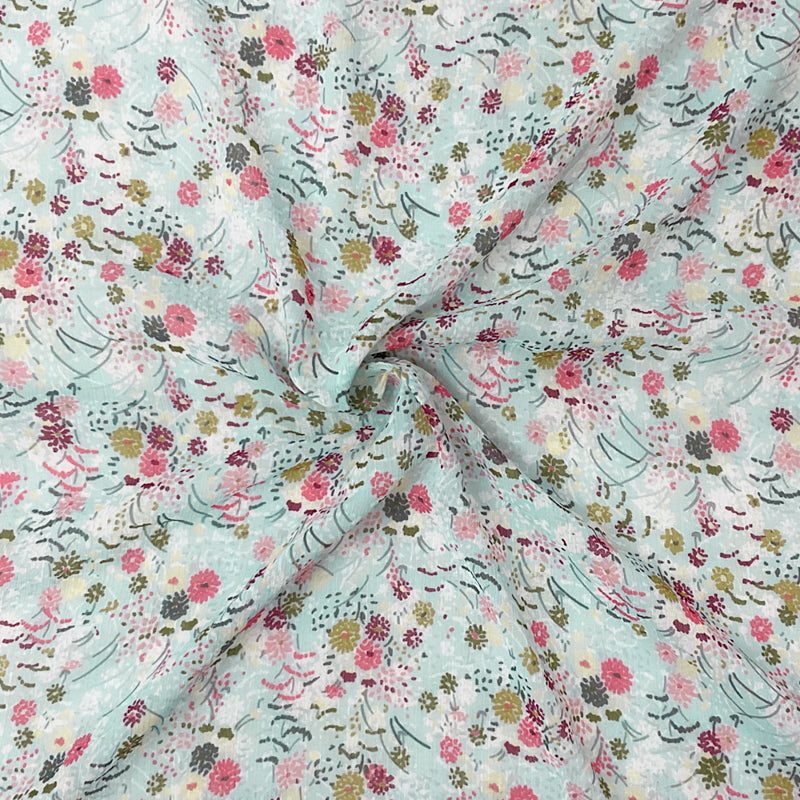 Blue-Multi Poly Floral Printed Crinkle Yoryu Chiffon Woven Fabric