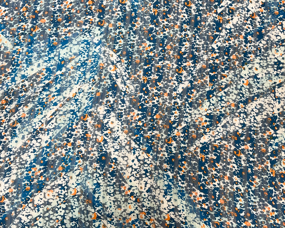 Blue-Multi Poly Floral Printed Satin Stripe Chiffon Woven Fabric