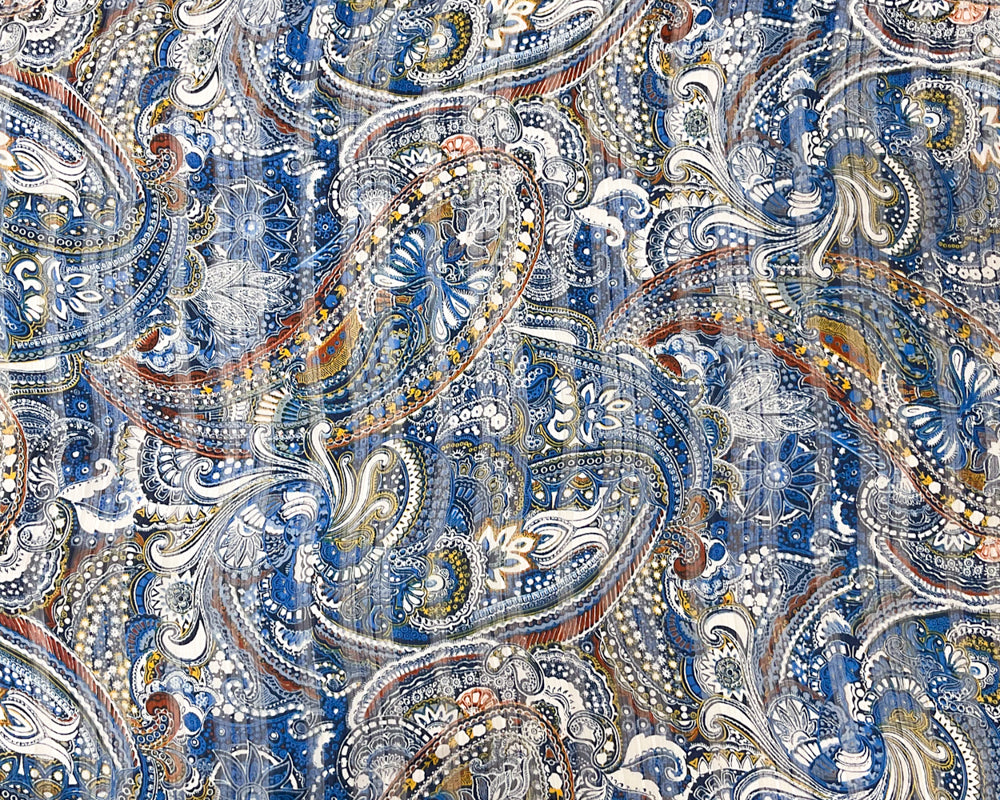 Blue-Multi Poly Paisley Printed Satin Stripe Chiffon Woven Fabric