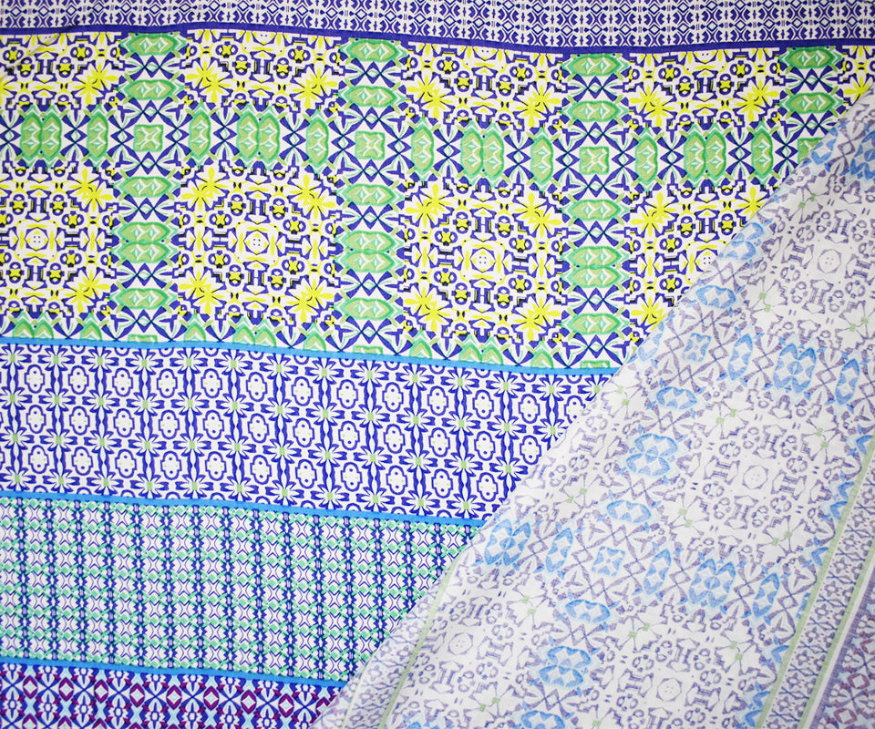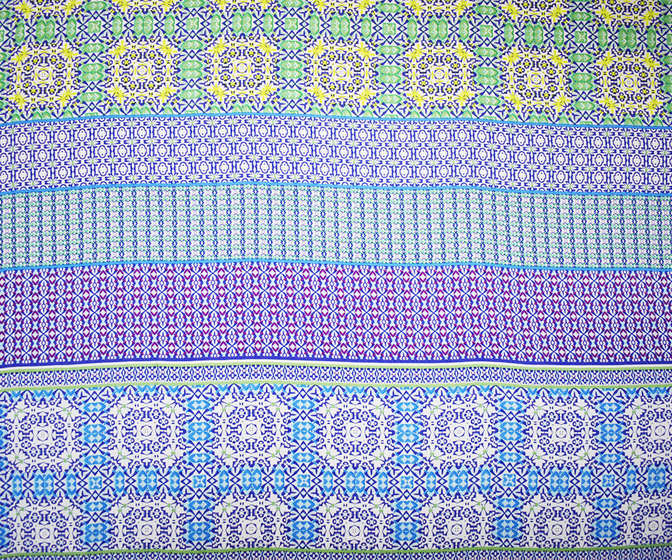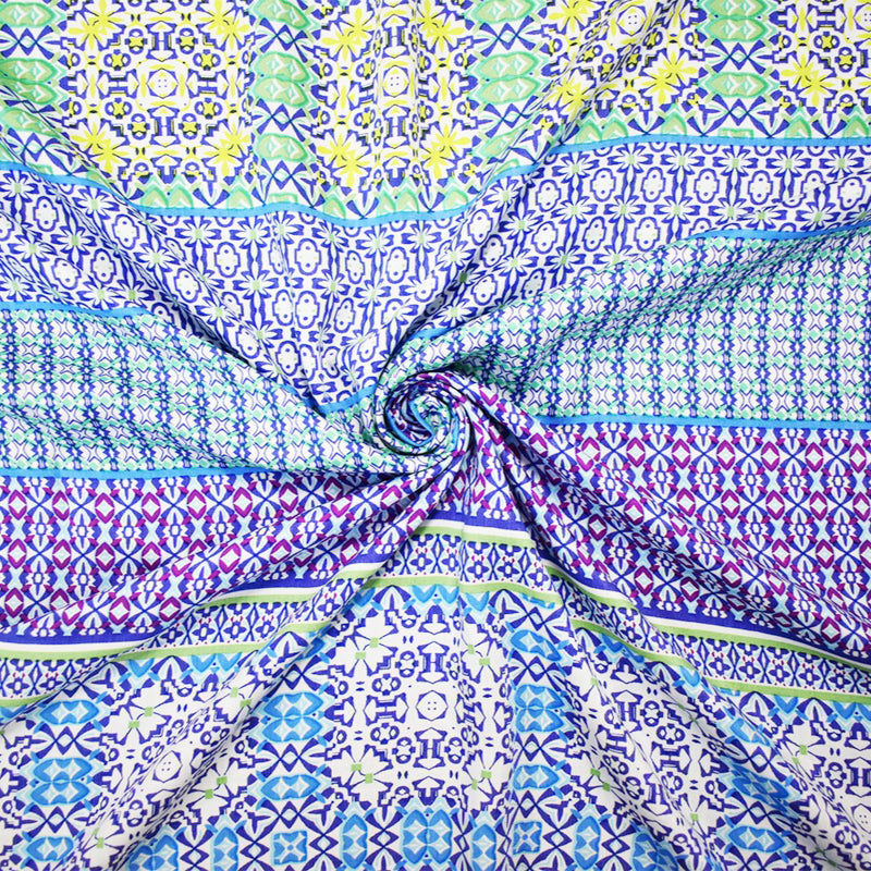 Blue-Multi Rayon Moroccan Border Printed Twill Woven Fabric