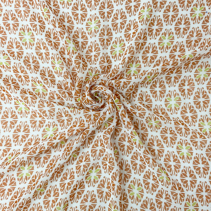 Brown-Multi Poly Abstract Floral Tile Print Chiffon Woven Fabric