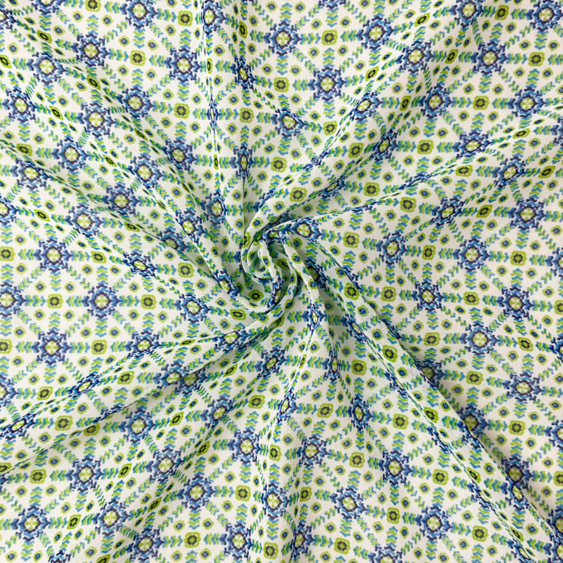 Green-White-Multi Poly Abstract Printed Chiffon Woven Fabric