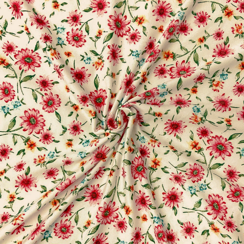 Ivory-Multi Poly Stretch Spandex Floral Print DB Jersey Knit Fabric