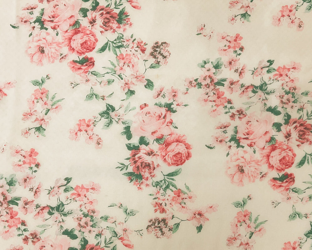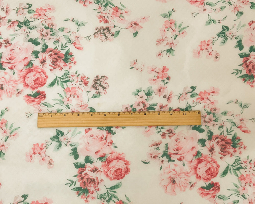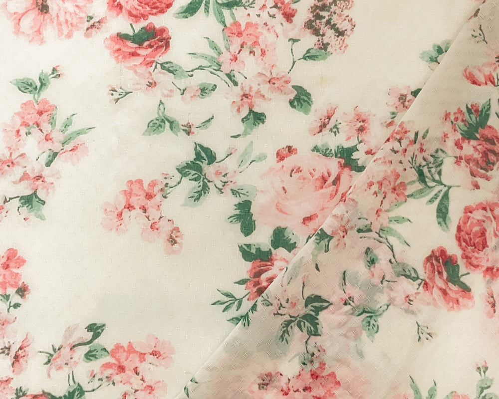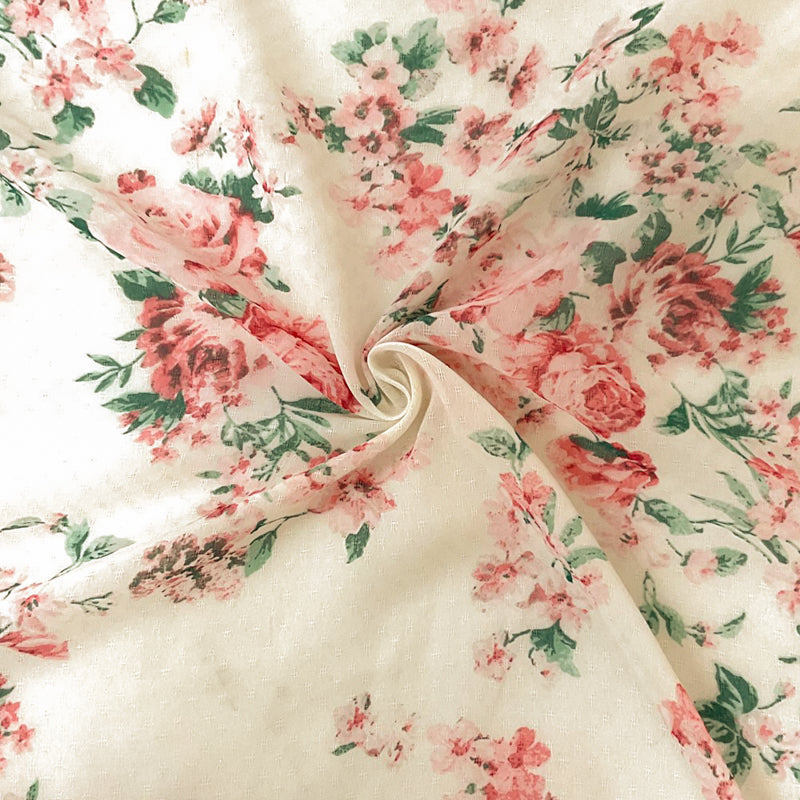 Ivory-Pink-Multi Poly Floral Printed Dobby Chiffon Woven Fabric
