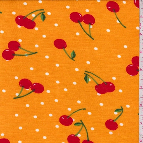 Mango Cherry Brushed French Terry Knit Fabric