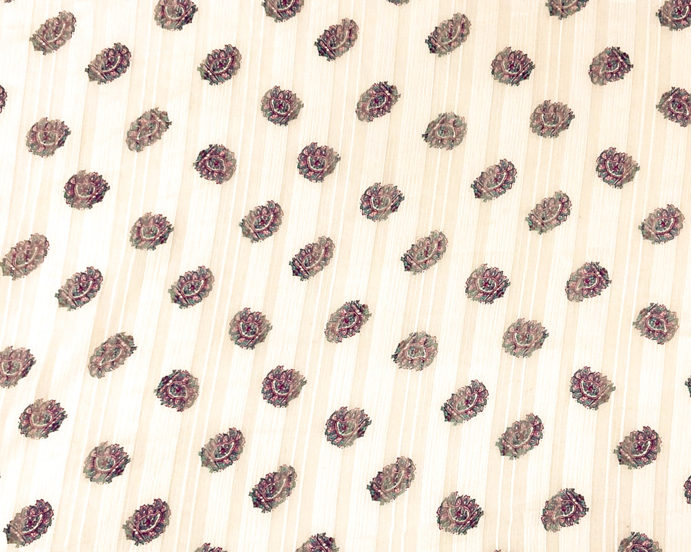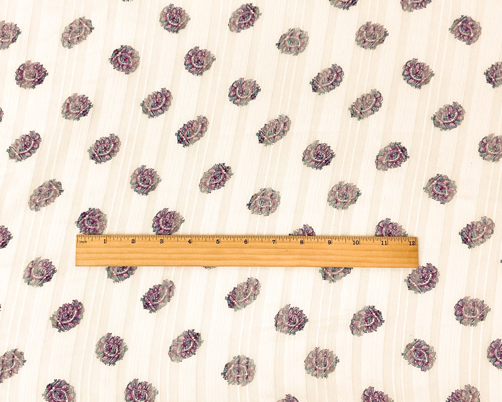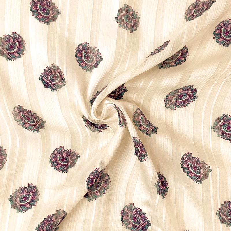 Off-White-Multi Paisley Print Stripe Satin Chiffon Woven Fabric