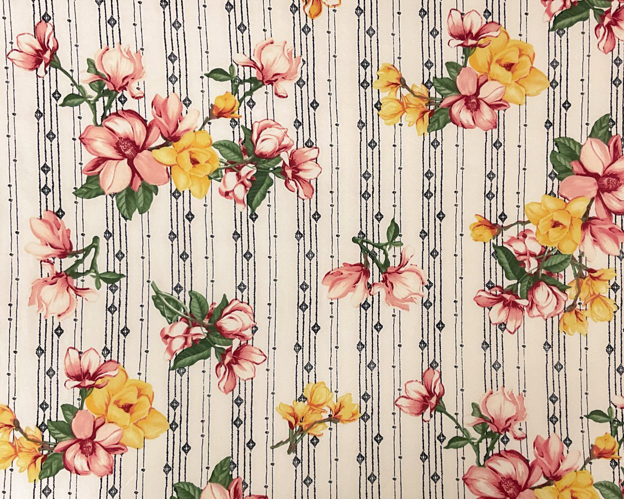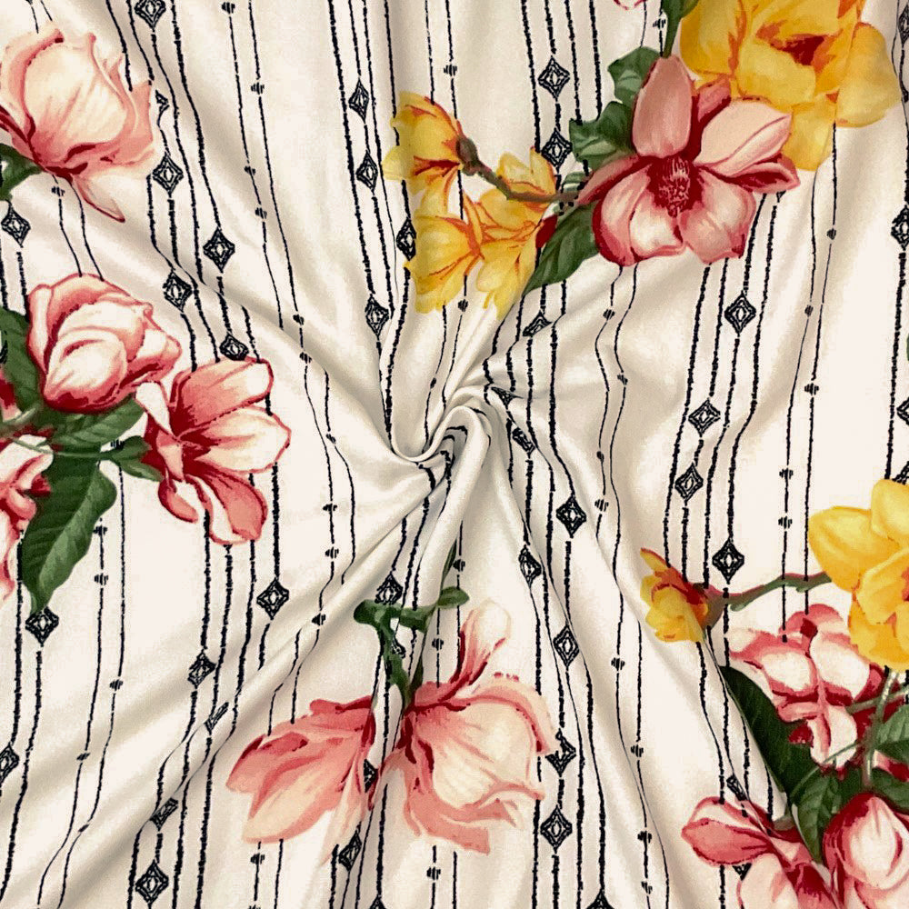 -Off-White-Multi Poly Spandex Stretch Floral Stripe Print Double Brush Jersey Knit Fabric