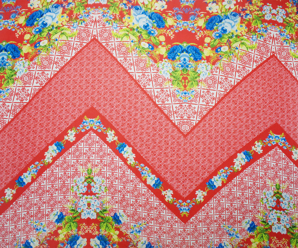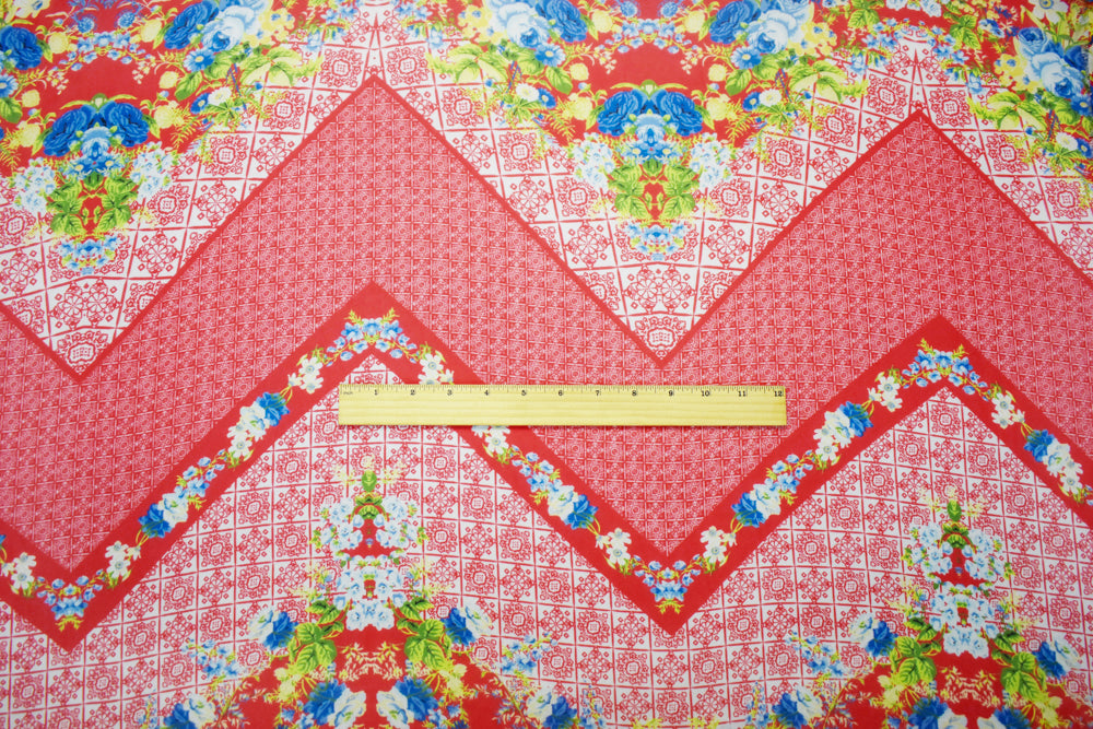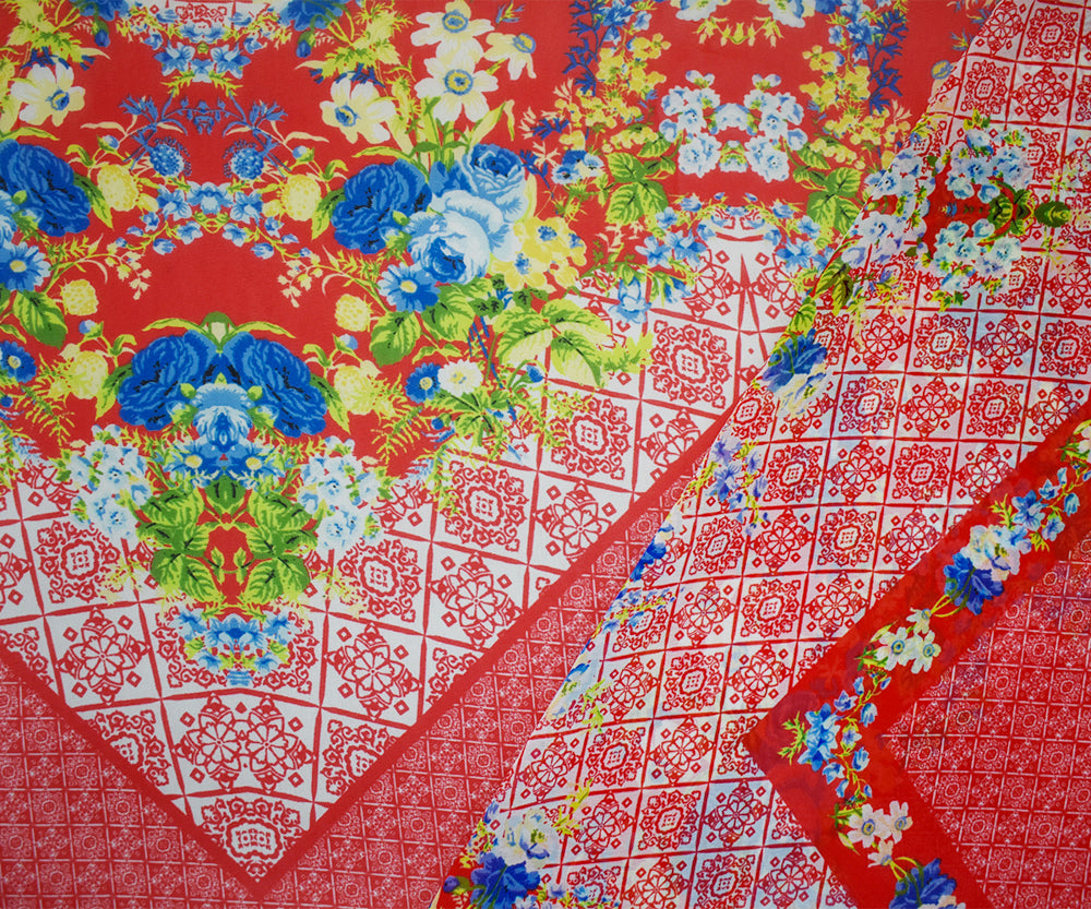 Orange-Blue-Multi Poly Floral Border Printed Chiffon Woven Fabric