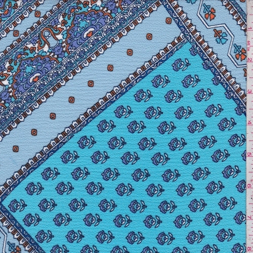 Periwinkle/Turquoise Multi Deco Tile Pebble Crepe Fabric