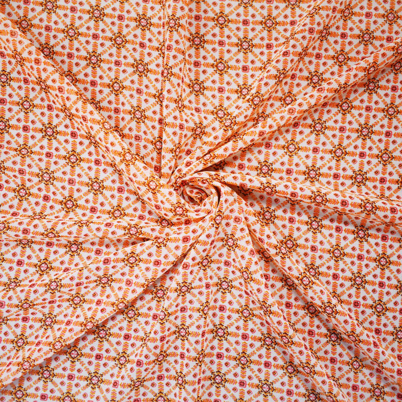 Pink-White-Multi Poly Abstract Printed Chiffon Woven Fabric