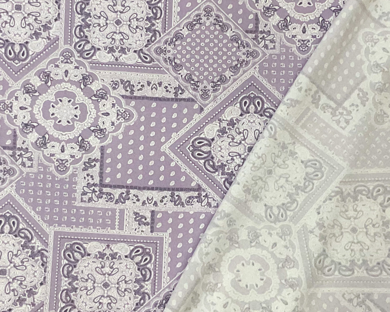 Purple-Ivory Poly Stretch Spandex Paisley Print DB Jersey Knit Fabric