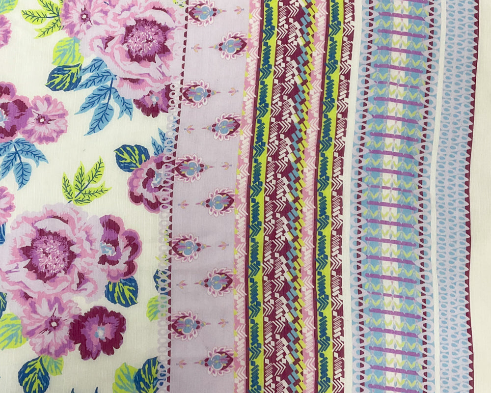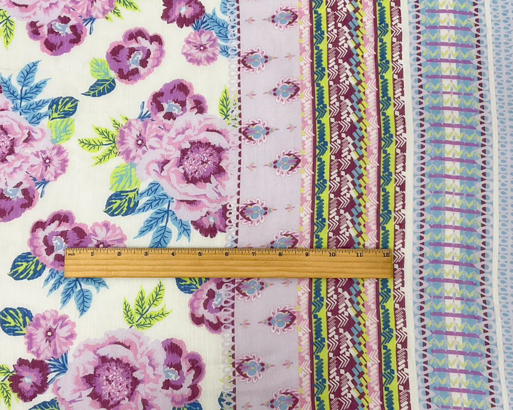 Purple-Multi Poly Floral Border Print Yoryu Chiffon Woven Fabric